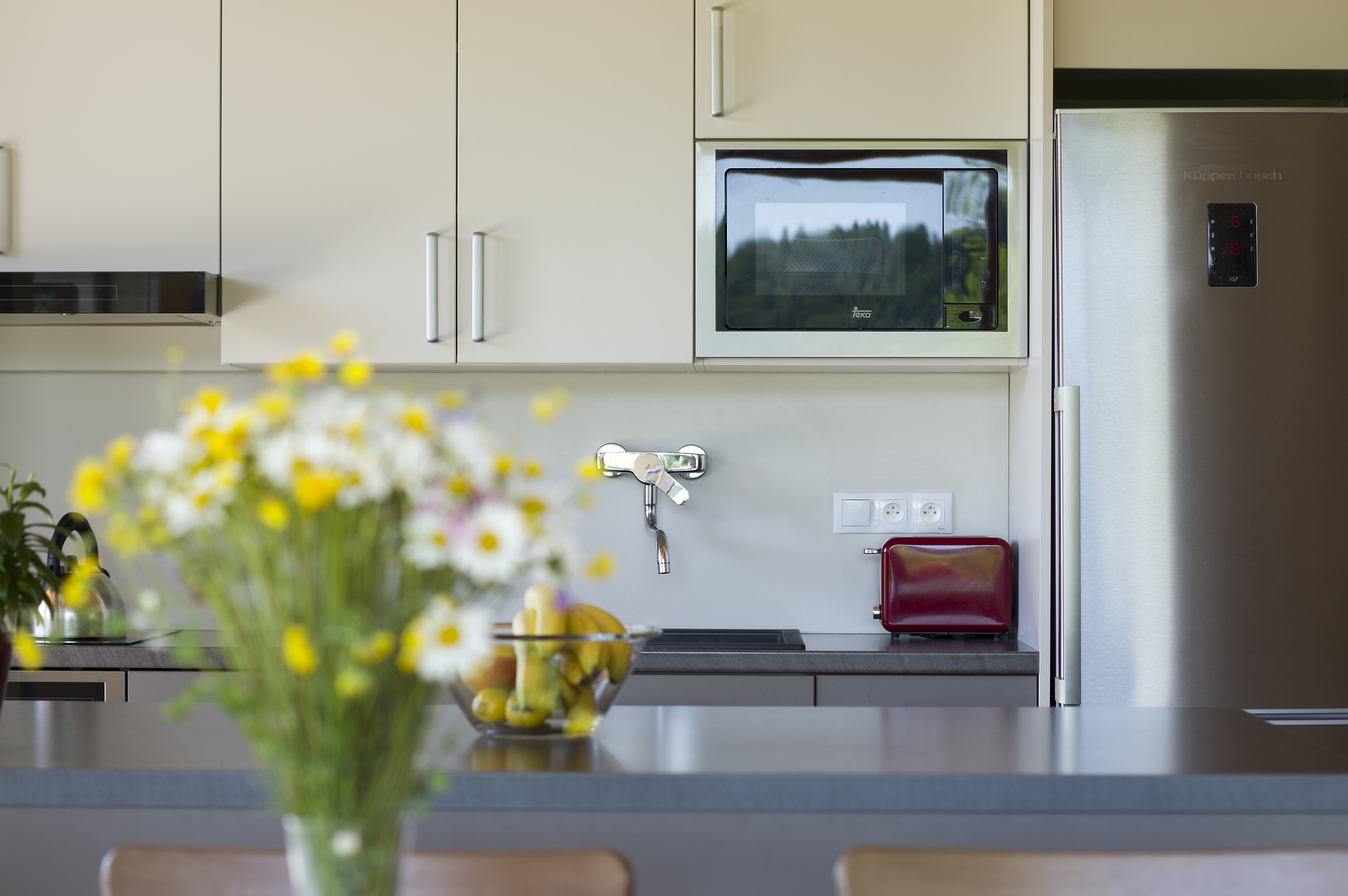 Určite ste spozorneli pri fotografii svietidiel v tomto dome. Keramické lustre, ktoré osviežujú interiér, sú ručne vyrábané. Pochádzajú z dielne pani Bělařovej – Bkeramika.