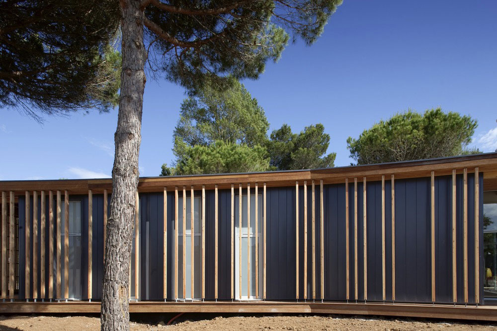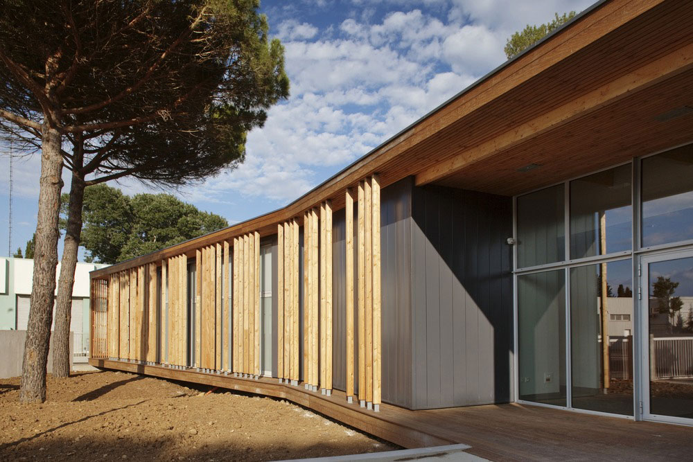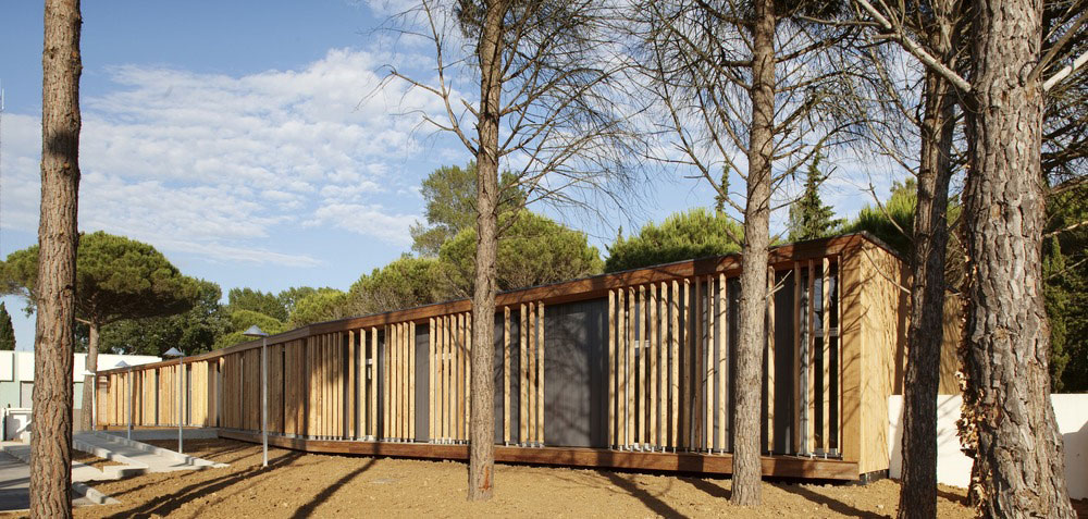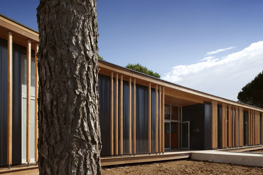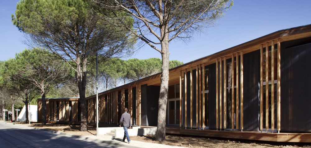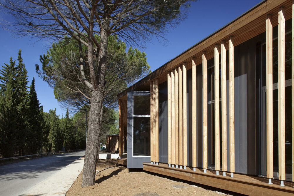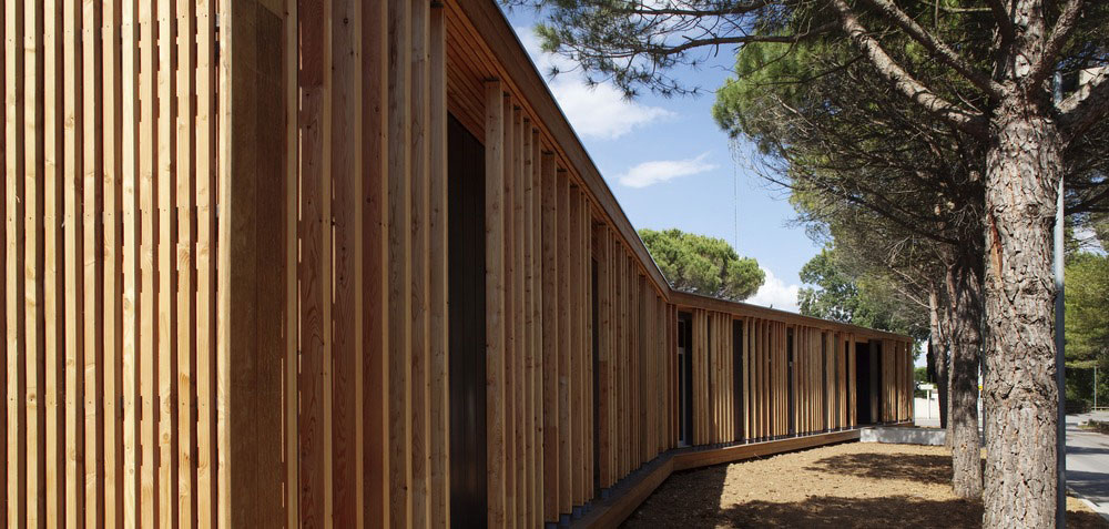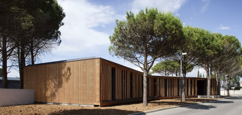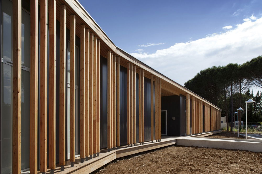 V husto zalesnenej časti mesta Le Grande Motte na juhu Francúzska vznikli nové kancelárie technickej správy mesta. Vysoké denné teploty v tejto oblasti na pobreží Stredozemného mora viedli architektov k hľadaniu takého riešenia, ktoré by obmedzilo nároky na umelé chladenie interiéru. Výsledkom je elegantná drevostavba, ktorá dokonale zapadá do okolitého prostredia a chráni zamestnancov pred ostrými slnečnými lúčmi.