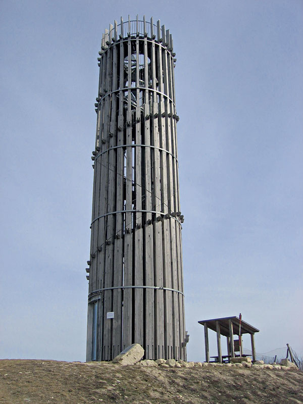Autorom vyhliadkovej veže je brniansky architekt Ing. arch. Pavel Jura. Stavbu rozhľadne tvorí točité schodisko zvislo obložené tridsiatimi agátovými trámami. Nosné stĺpy sa realizovali z masívnych agátových fošní. Každý stĺp tvorí sedem fošní. Ich počet sa so zvyšujúcou výškou veže zmenšuje. V mieste vyhliadkovej plošiny tak tvorí stĺp len jedna fošňa. Vďaka tomu sa pri výstupe na vežu postupne otvára výhľad do krajiny (od takmer uzatvoreného sokla až po otvorenú vyhliadku).