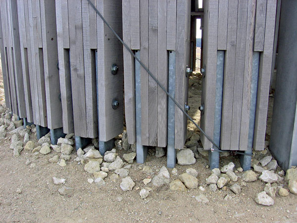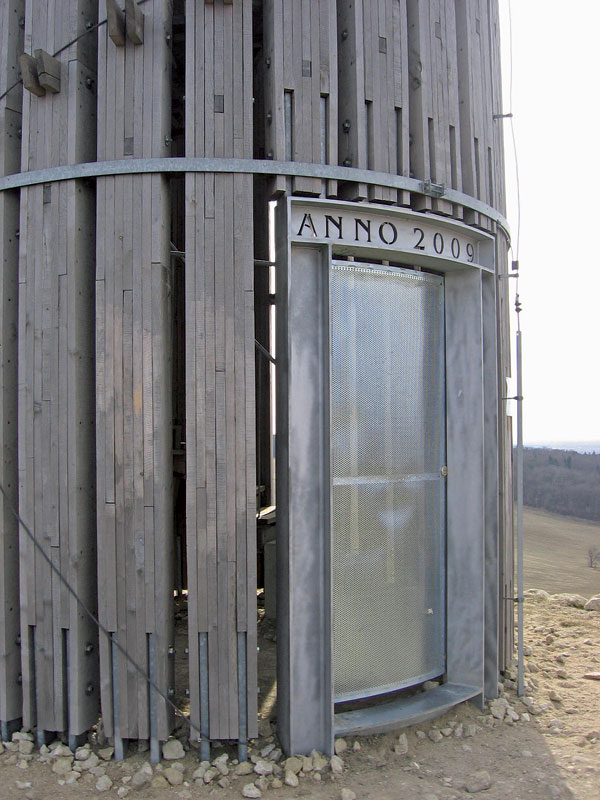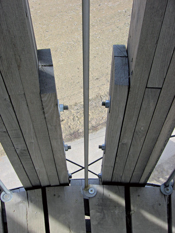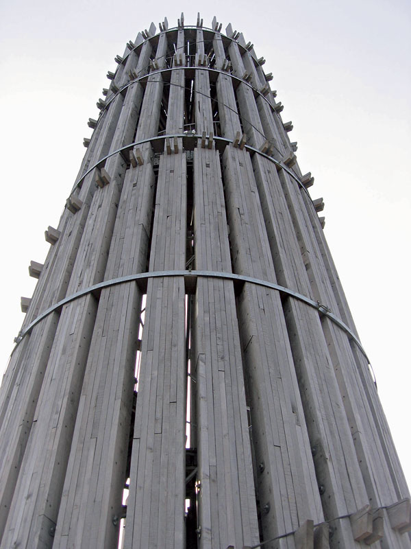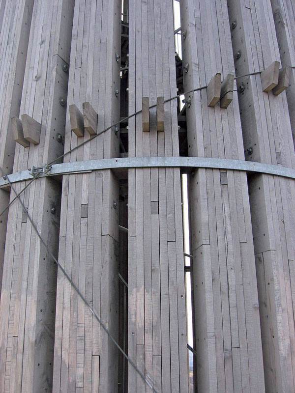Drevená konštrukcia valcového tvaru je spevnená oceľovými lanami a piatimi kovovými obručami. Masívne agátové drevené prvky sú ukotvené pomocou kovových pätiek do betónového základu. Tým sa zamedzil kontakt dreva so zemou a zároveň sa zabezpečila ochrana dreva proti vzlínajúcej vlhkosti a dostatočné odvetranie konštrukcie.