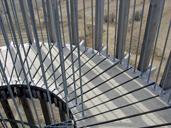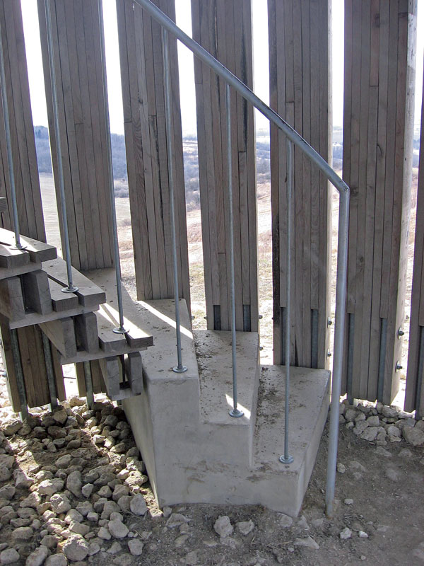 Autor projektu vybudovaním prvých troch schodov z betónu zabránil priamemu kontaktu dreva so zemou, ktorý by bol nežiaduci. Keďže konštrukcia nie je zastrešená, drevo by sa nachádzalo v štvrtej triede ohrozenia, čím by sa zvýšilo jeho poškodzovanie drevokaznými činiteľmi.