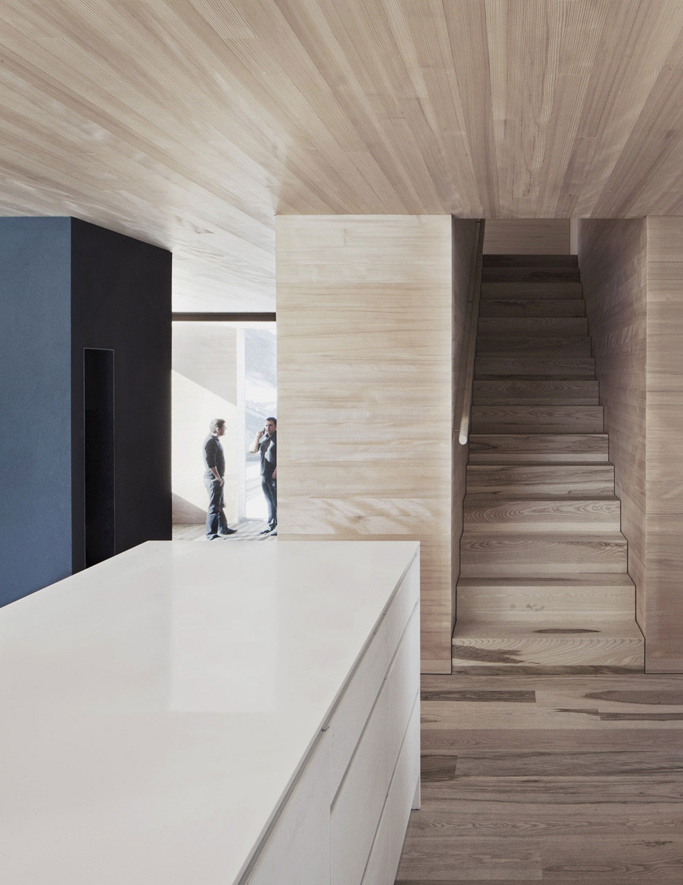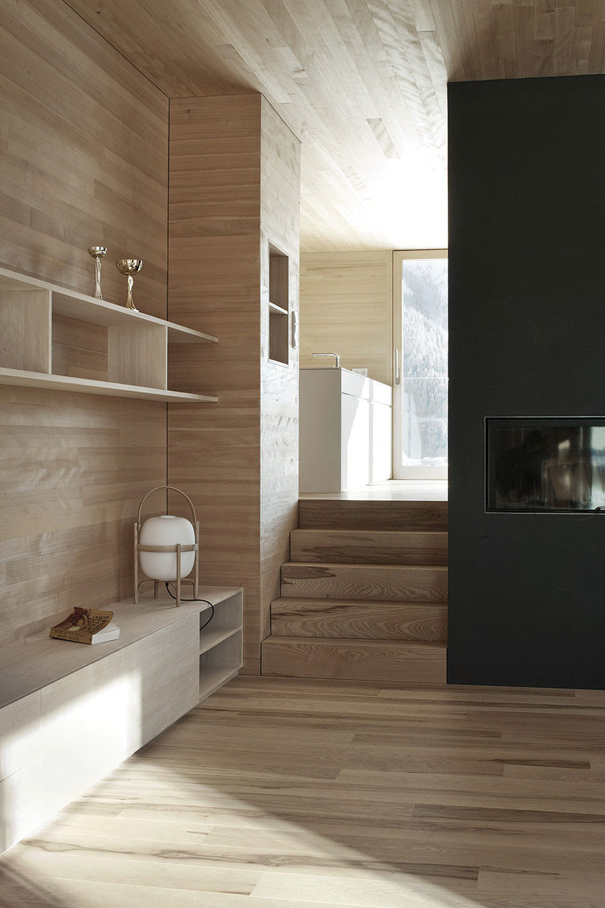 Dovolenkový príbytok pre 6-člennú rodinu pochádza z dielne rakúskeho architektonického štúdia Bernardo Bader Architects a nachádza sa medzi vrchmi Glatthorn a Zafer Horn v dedinke Fontanella, ktorá má historické väzby na kočovných obyvateľov (tzv. Walser). Tí sa usadili v alpských regiónoch na prelome 12. a 13. storočia.