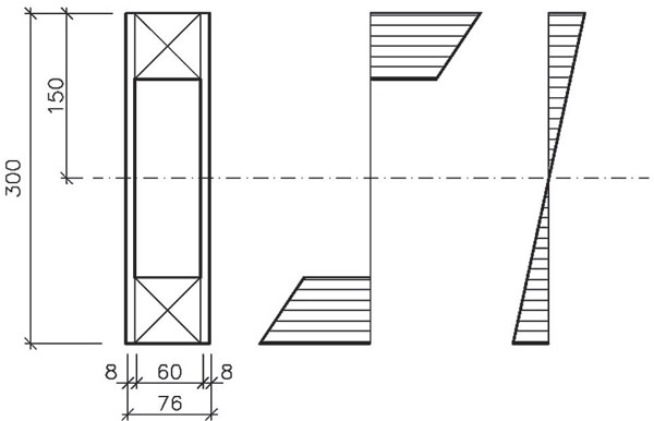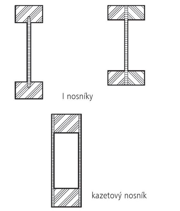 | Obr. 5 Kazetové nosníky | Obr. 6 Rozdelenie normálových napätí na stropnici |
