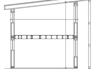 Osadenie krokiev na pomúrnicu sa realizovalo cez drevené kliny, keďže osadenie nie možné bez toho, aby zárezy neoslabili pás. V stropnej konštrukcii v miestach zvýšeného zaťaženia možno ľahko nosníky osadzovať do dvojíc alebo trojíc. Zavetrenie a stabilitu štíhlych nosníkov a stĺpikov zaisťovali stabilizačné nosníčky a zavetrovacie diagonály a plášť z OSB na interiérovej strane stien. Overenie kvality nosníkov sa realizovalo skúškami na šmyk za ohybu v laboratóriách Technickej univerzity vo Zvolene. Výsledky skúšok potvrdili očakávané parametre, pretože porušenie nastalo prekročením šmykovej únosnosti steny v neutrálnej osi. Veľkosť a rozdelenie normálových napätí (obr. 6) poukazuje na rezervy v únosnosti prierezu, pretože pri dimenzovaní bol rozhodujúci medzný stav použiteľnosti.