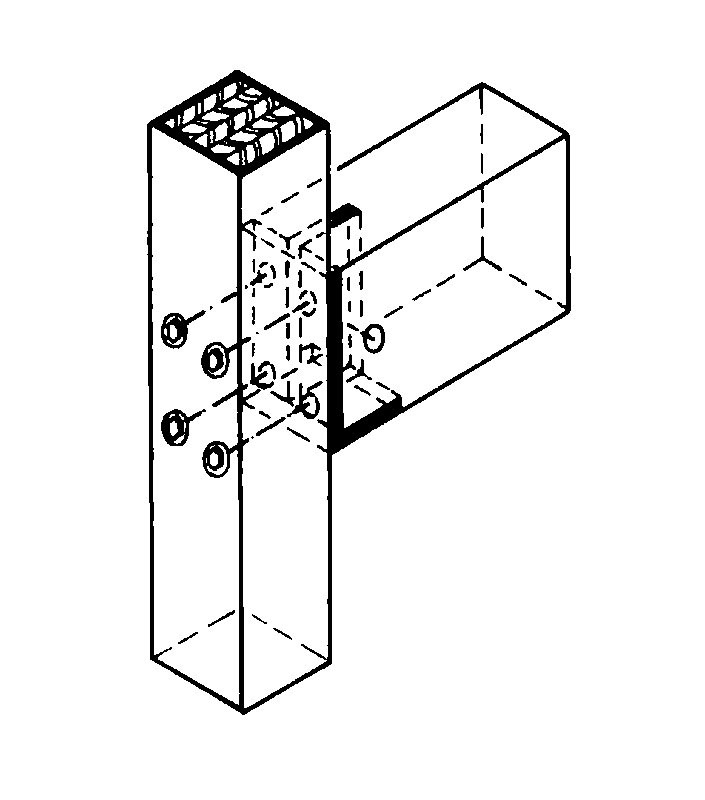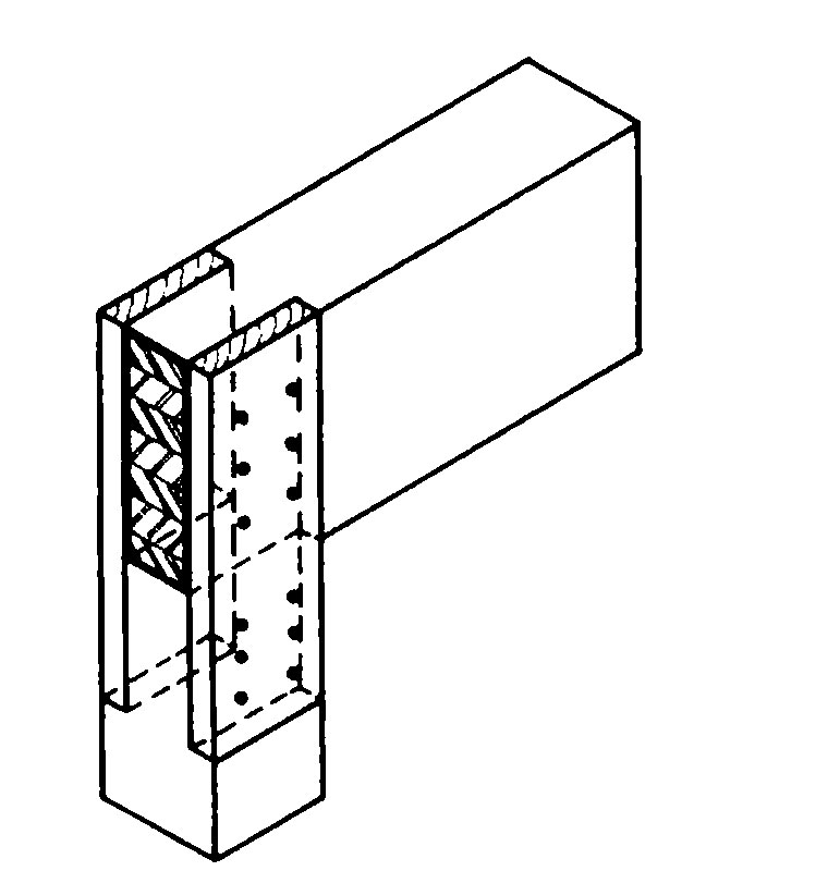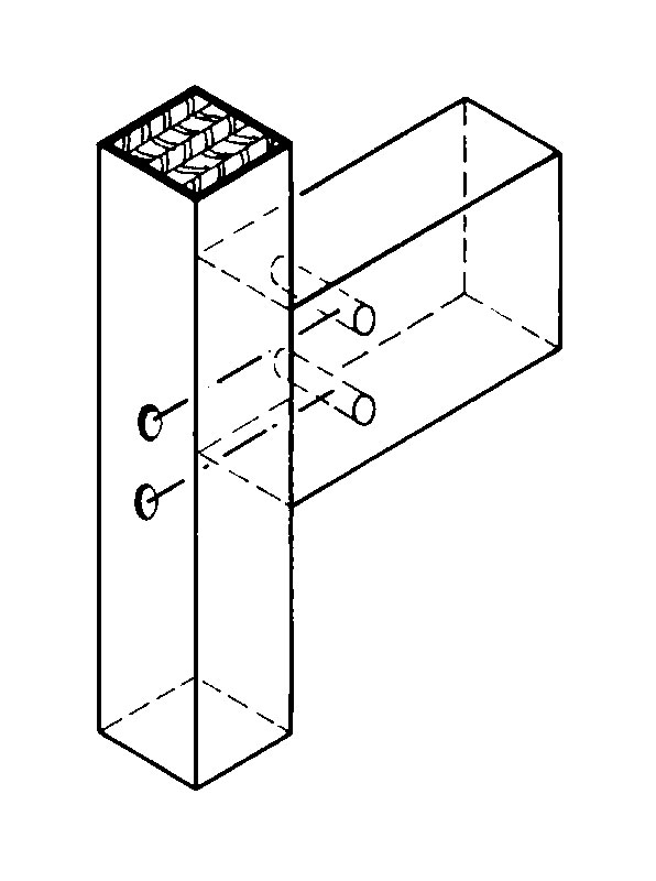 | Obr. 9 Spoj vytvorený pomocou kolíkov [1] | Obr. 10 Spojenie pomocou naskrutkovaného oceľového uholníka s navarenou príložkou [1] |