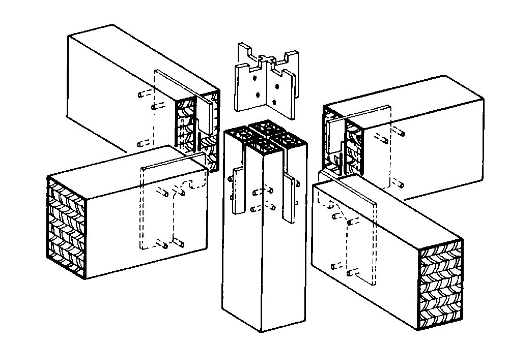 Montáž stykov drevených skeletových systémov sa zjednodušuje použitím jednoduchých spojovacích prostriedkov, ako sú napríklad: oceľové uholníky, oceľové platne s pretlačenými hrotmi či oceľové konzoly, kolíky. Často sa ako výhodné riešenie ukazuje použitie kombinácie jednotlivých spojovacích prostriedkov.