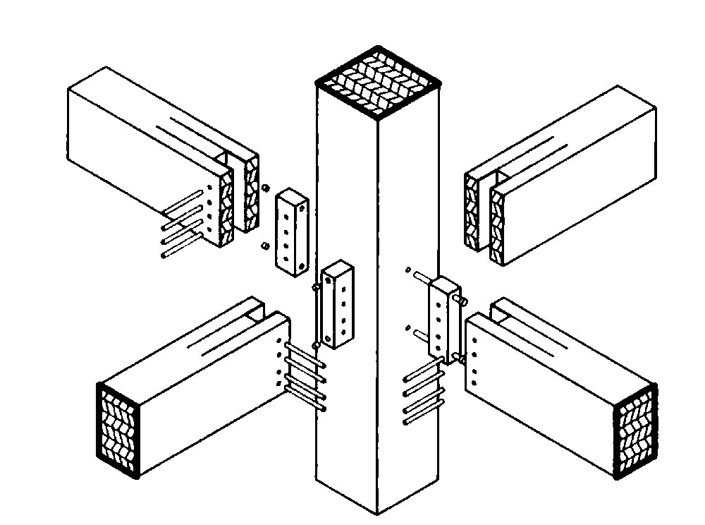 Uzly – styky drevených skeletových konštrukcií medzi podperami a nosníkmi sa môžu realizovať ako nosné prvky vo viacerých rovinách podpery s dvojitými nosníkmi a nosníky s dvojitými podperami. Ich výber má výrazný vplyv na samotný charakter stavby z architektonického hľadiska. Správnym výberom možno stavbe dodať osobitý charakter a dotvoriť jej celkový výraz.