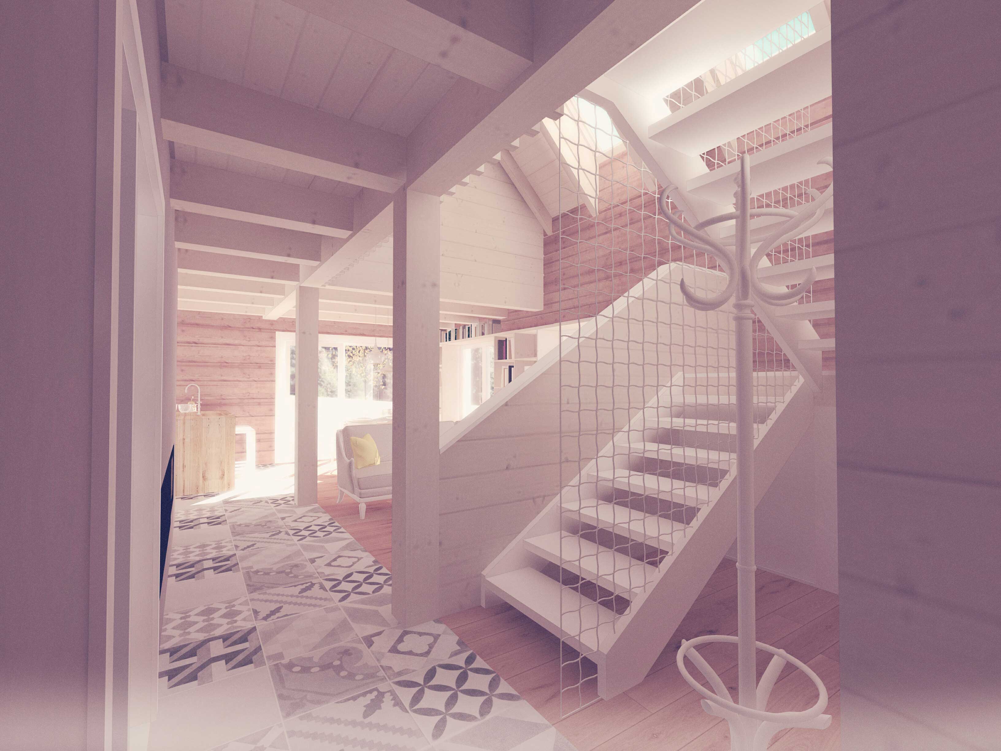 „Materiálovo bude objekt pôsobiť veľmi vzdušne a čisto, pretože mu dominuje biela a sivá, a to aj na strešnej krytine, okenných a dverových výplniach či omietke garáže, v kontraste s kanadským cédrovým drevom drevenice a smrekovým drevom krovu strešného presahu. Vykurovanie je navrhnuté tepelným čerpadlom vzduch-voda,“ dopĺňa architekt.