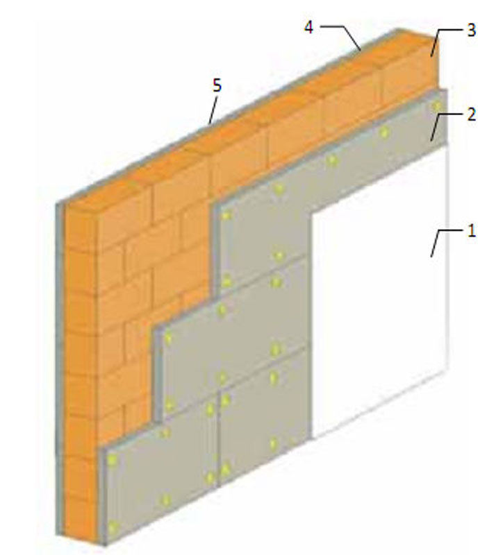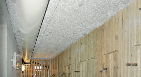 Ku komplexnému zabezpečeniu zateplenia bytových domov patrí aj tepelná izolácia podláh prízemných podlaží. Z priestorových možností, ale aj z hľadiska stavebnej fyziky je výhodné tieto podlahy tepelne izolovať zo strany pivníc. Na realizáciu týchto izolácií sa veľmi dobre osvedčili kompozitné dosky z penového polystyrénu alebo minerálnej vlny v kombinácii s drevocementovou doskou (obr. 2). Okrem priaznivej ceny je prednosťou tohto riešenia hlavne jednoduchá a rýchla montáž bez mokrých procesov. Mechanické upevnenie dopredu nastriekaných dosiek pomocou tanierových príchytiek sa dá zrealizovať veľmi rýchlo aj pri veľkom počte pivníc.