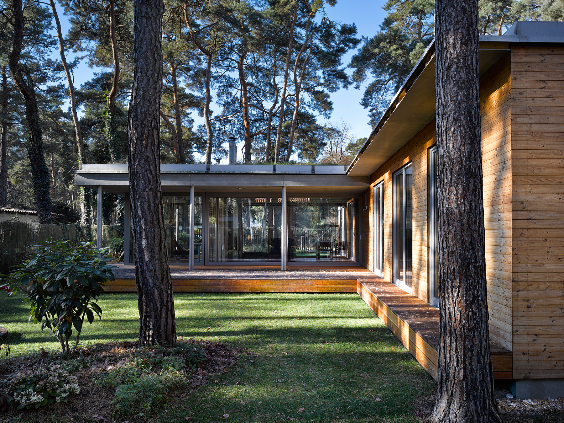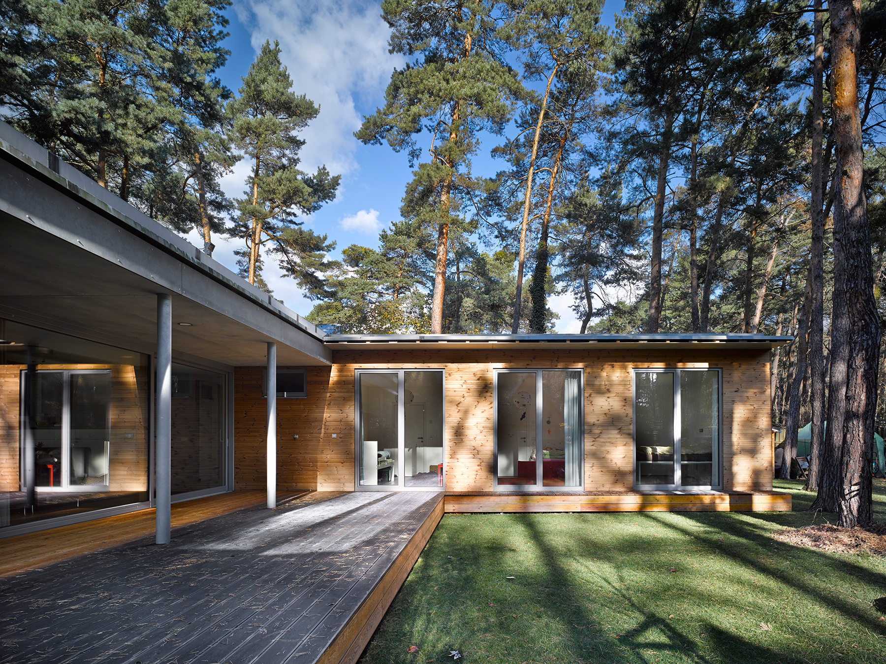 Jednopodlažnú drevostavbu v Lhote u Dřís architekti zo štúdia ARCHTEAM – Milan Rak, Alena Režná – koncipovali tak, aby zachovali prirodzené prostredie odrastených borovíc a dom doň jemne napasovali.