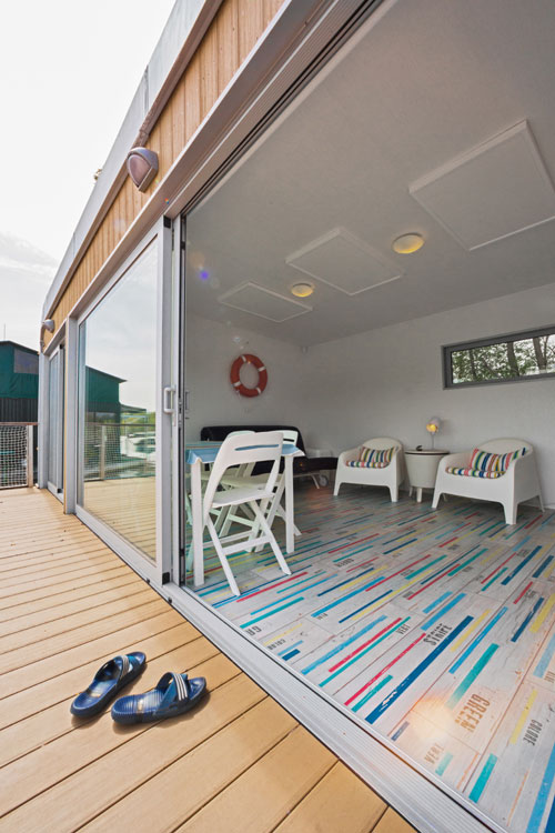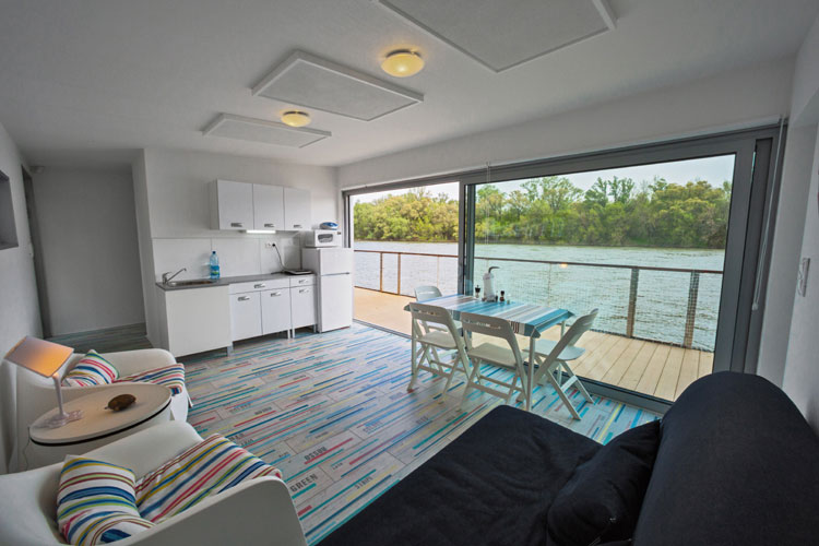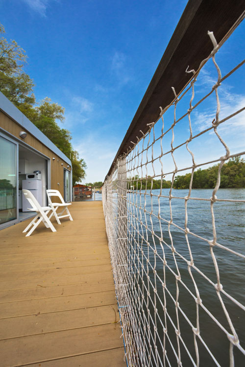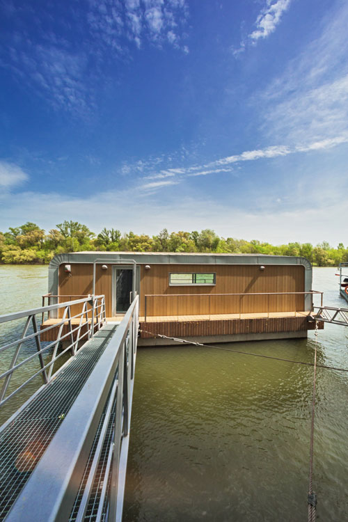 Ak sa chcete presvedčiť, že drevostavby a voda k sebe pasujú, vydajte sa na rieku Váh. Blízko Komárna stretnete drevený rekreačný dom, ktorý tu pláva na dvoch nepotopiteľných železobetónových pontónoch. Plávajúca chata s označením PCH 44 je určená na sezónne využitie od jari do jesene a vďaka zabudovaným technológiám je veľmi sebestačná.
