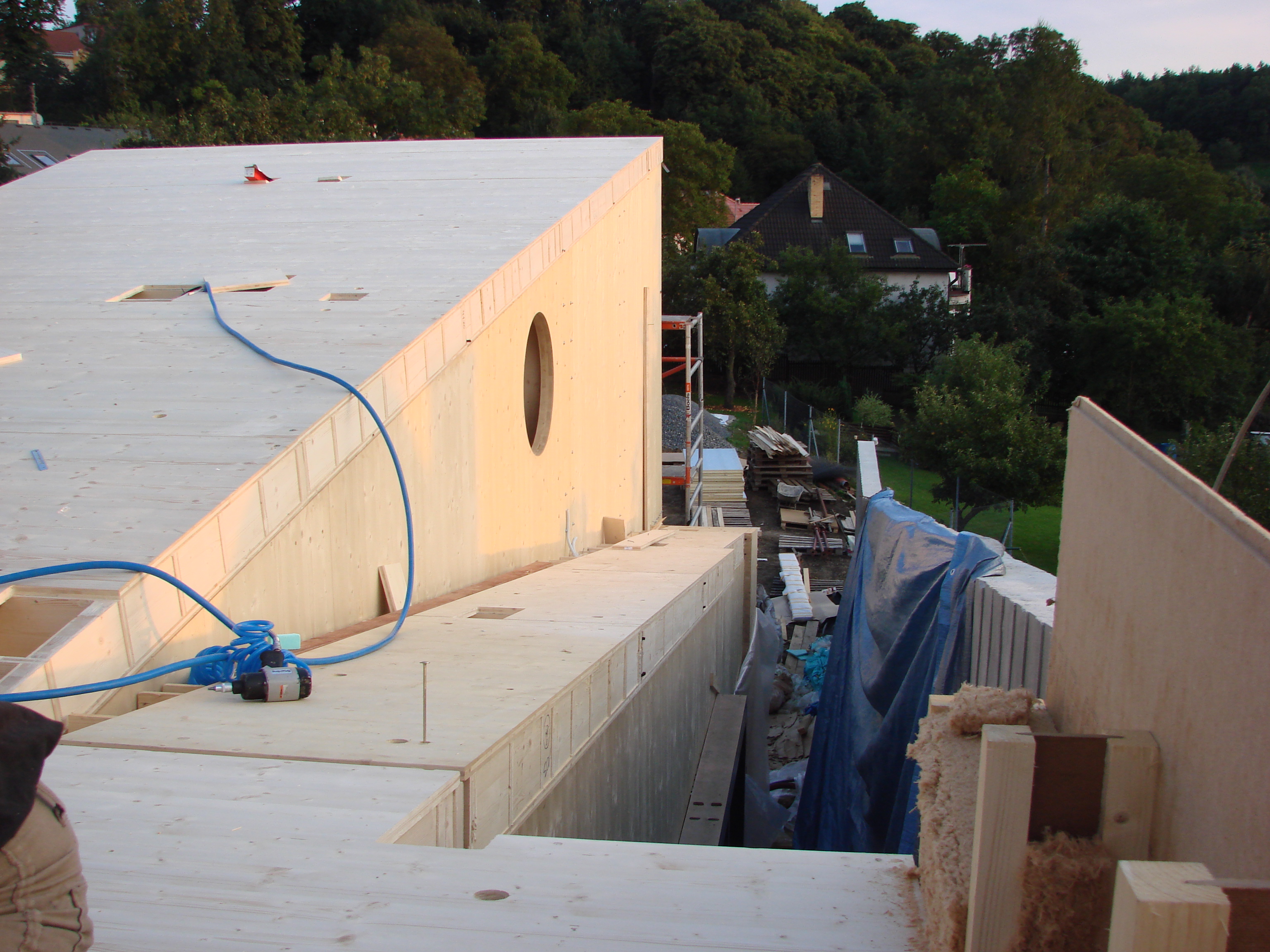Strecha po dokončení fasád, pred vyrovnaním a výsadbou