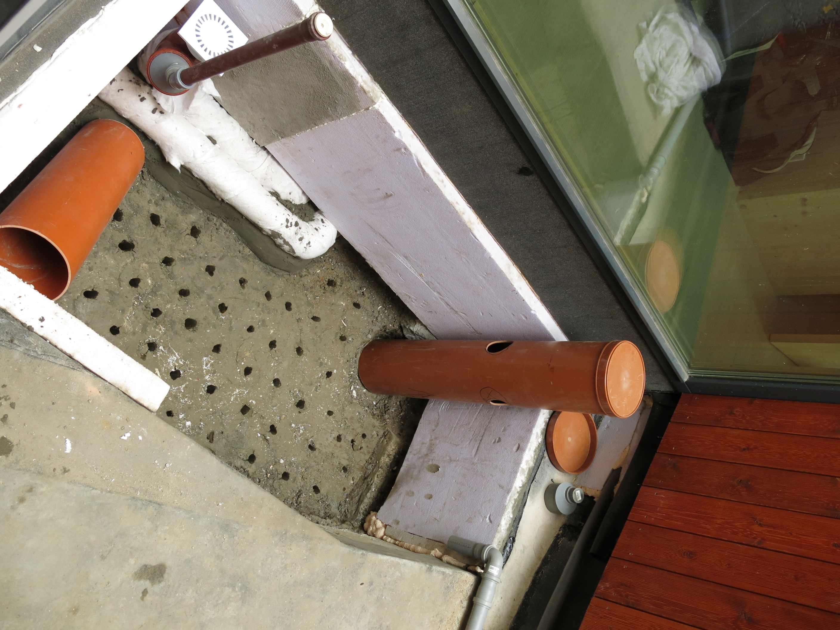 Drenážny systém v ílovitom podloží (pre strom v átriu) pred zásypom vegetačnou zeminou
