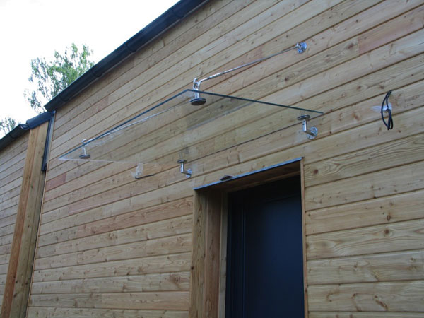 Praktická ochranná strieška nad vstupom do domu. Kombinácia skla, kovu a dreva pôsobí minimalisticky a nadčasovo. |