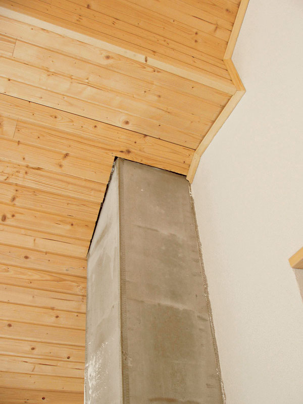 Ďalšími nedostatkami starších drevostavieb, ktoré sú dôvodom na rekonštrukciu, sú nedôsledne a zle zrealizované požiarne opatrenia. Štandardne nesprávne konštrukčné riešenie predstavuje vzdialenosť drevených prvkov (klieštiny, krokvy, väzné a stropné trámy, doskový záklop, drevená stena) a ich odizolovanie v mieste komína. Medzi drevom a komínom treba dodržať vzdialenosť minimálne 50 mm. Dištancia sa rieši ako otvorená medzera s prúdením vzduchu alebo vyplnená tepelnoizolačným nehorľavým materiálom s triedou reakcie na oheň A. Podlaha okolo zdroja tepla má byť nehorľavá minimálne v polomere 800 mm od krajných častí dvierok (dopredu aj po oboch stranách). Pri telesách, ktoré sú zdrojom tepla, sa odporúča použiť priľahlé murované akumulačné steny, najmä v prípadoch, ak ide o vyššiu teplotu na povrchoch telies (nad 60 °C). Medzi telesami s nižšími povrchovými teplotami (40 až 60 °C) a drevenými konštrukciami treba ponechať otvorenú vzduchovú medzeru aspoň 100 mm alebo zhotoviť akumulačnú murovanú stenu v rovnakej vzdialenosti.