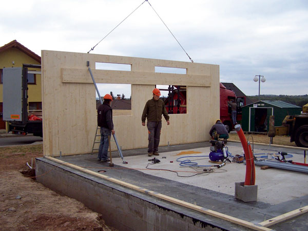 Hlavným problémom pre zhotoviteľov v súvislosti s nízkoenergetickými stavbami je správna technológia stavby vzduchotesného obvodového plášťa budovy. Komponenty z masívneho dreva majú predpoklady stať sa vhodným stavebným systémom pre tieto energeticky úsporné stavby. Jednou z hlavných výhod tohto stavebného systému je práve jeho vzduchotesnosť, spočívajúca v utesnení všetkých spojov a v zakrytí škár. Potvrdzuje to aj stavba pasívneho domu v Mníšku pod Brdmi, kde vzduchotesnosť obvodového plášťa pri tlakovom blowerdoor teste dosiahla hodnotu n50 = 0,36 h-1. Použitý stavebný systém z masívnych veľkoformátových komponentov tu zároveň ukázal, že dobre zhotovený vzduchotesný obvodový plášť nepotrebuje žiadne dodatočné fólie.