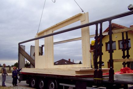 | Transport stropného elementu na miesto určenia | Ukladanie stropného elementu na miesto určenia |