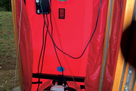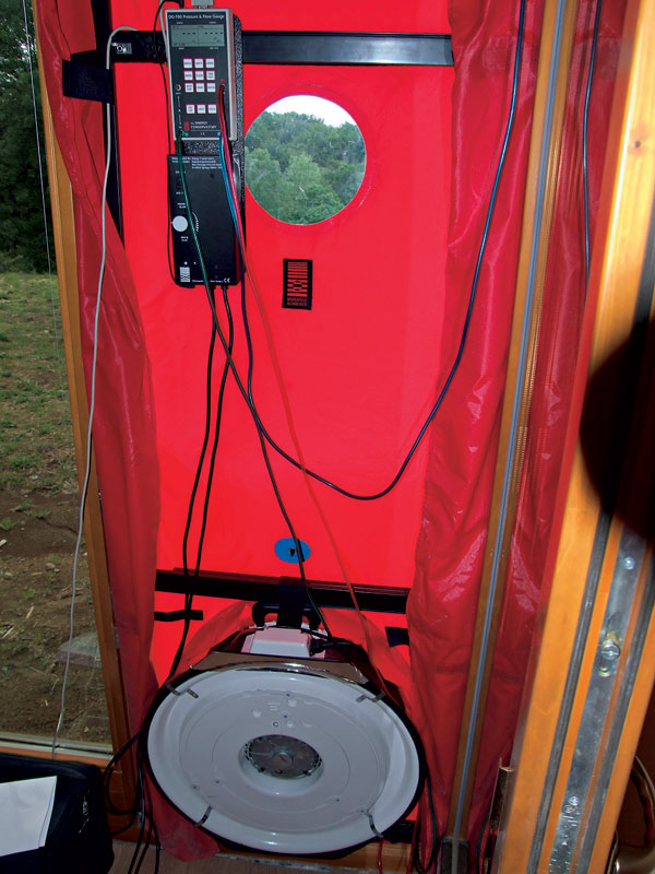 | Obr. 7 Budova sa podrobila skúške vzduchotesnosti – takzvanému Blower-door testu. | Obr. 8 Počas skúšky sa vytvoril pretlak, respektíve podtlak, pri ktorom sa dali zistiť miesta netesností. |
