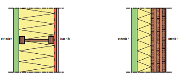 Obr. 11 Priečny rez steny rámovej konštrukcie (vľavo) a masívnej konštrukcie (vpravo)