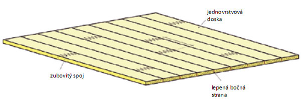 Obr. 9 Jednovrstvová doska – lamely sa na bočných stranách lepia iba zriedkavo