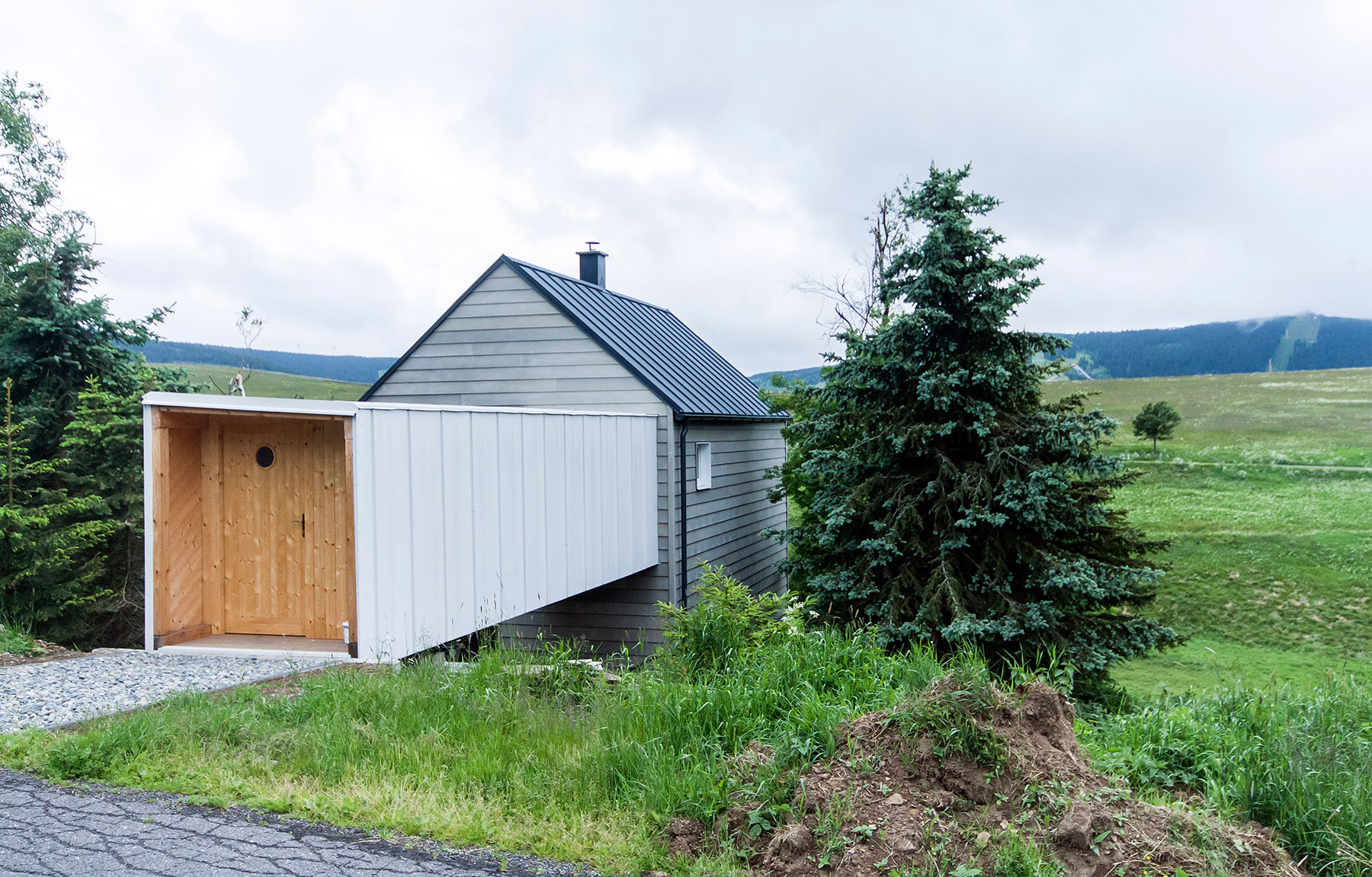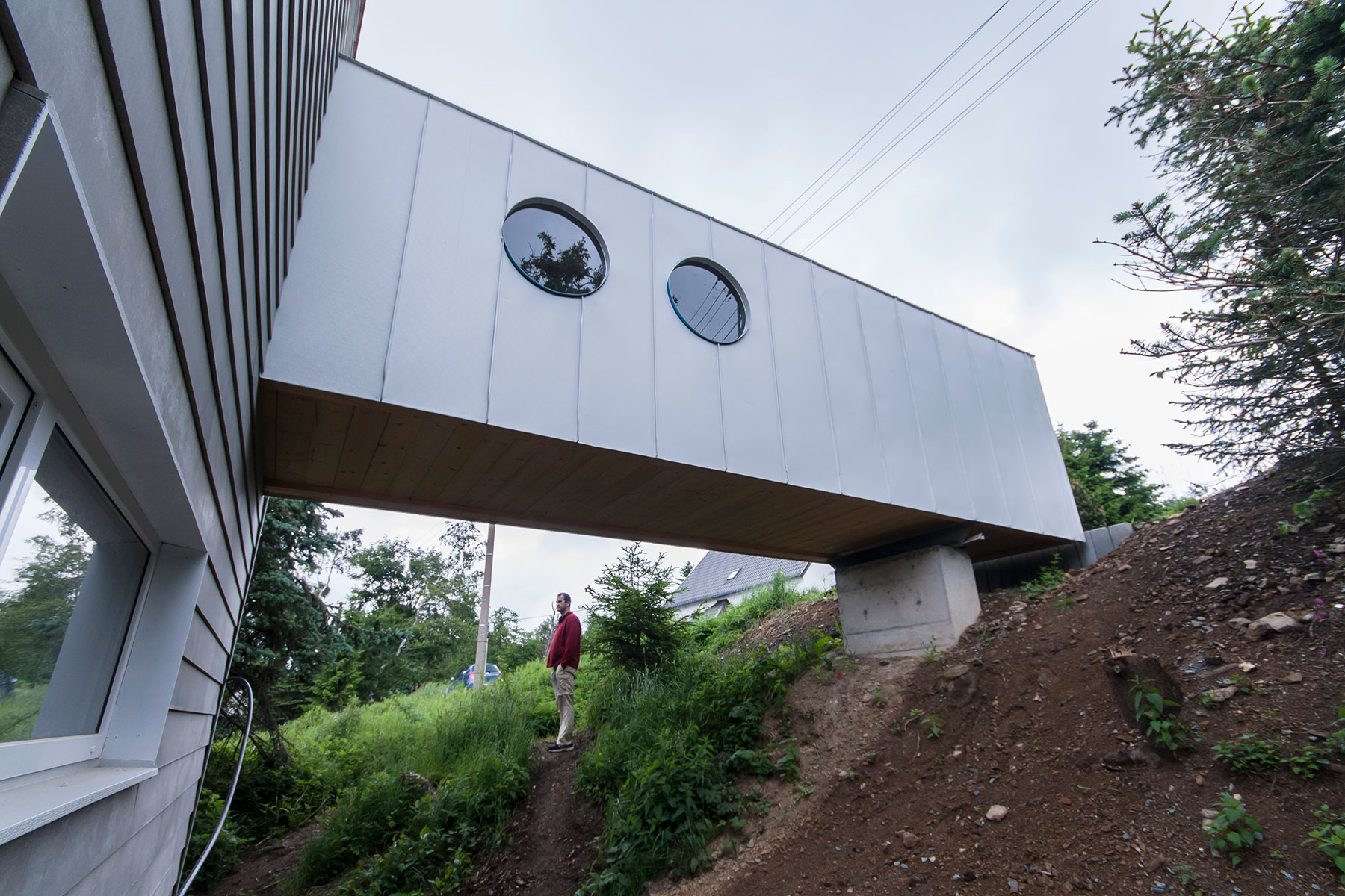 Nerovný terén vo výške 920 m n. m. môže byť problémom pri riešení výstavby chaty či rodinného domu. V Krušných horách nie je o podobné pozemky núdza, horšie je vytvoriť projekt, ktorý by negatíva zvažujúceho sa terénu vyvážil, prípadne premenil na výhodu. Zaujímavý projekt menšieho rodinného domu či chaty na nevďačnom pozemku vytvorilo architektonické štúdio majo architekti.