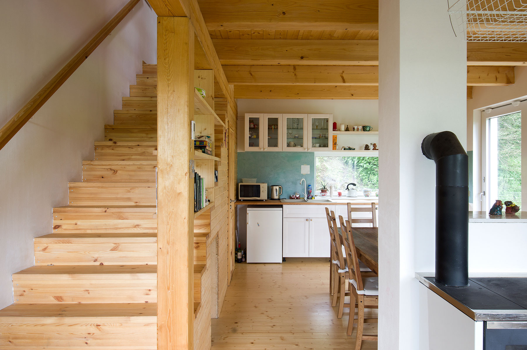 „Hrebeň sedlovej strechy je orientovaný kolmo k svahu – toto riešenie sme zvolili s ohľadom na zdôraznenú požiadavku dobrého výhľadu, hoci sa pôvodne uvažovalo o rovnobežnej orientácii,“ vysvetľuje Ing. arch. Štěpán Jablonský.