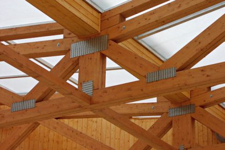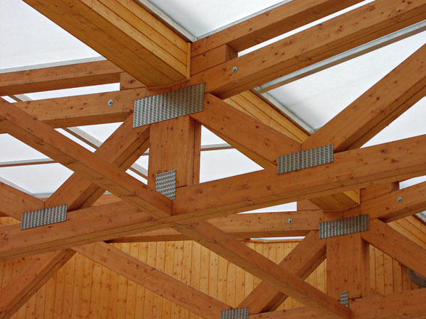 - úsporné priehradové konštrukcie so styčníkmi z platní s prelisovanými hrotmi,