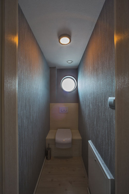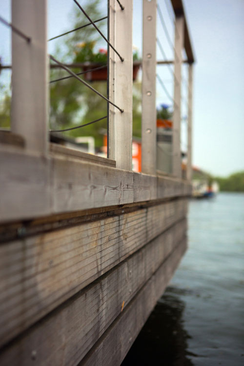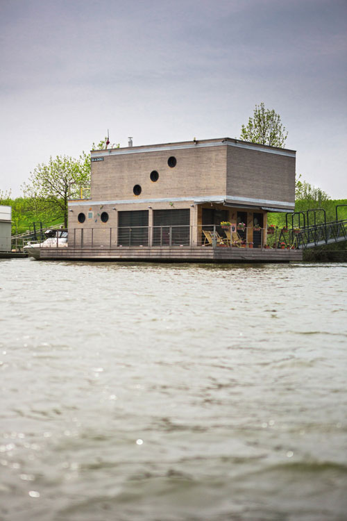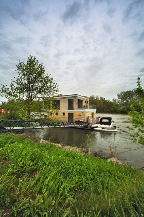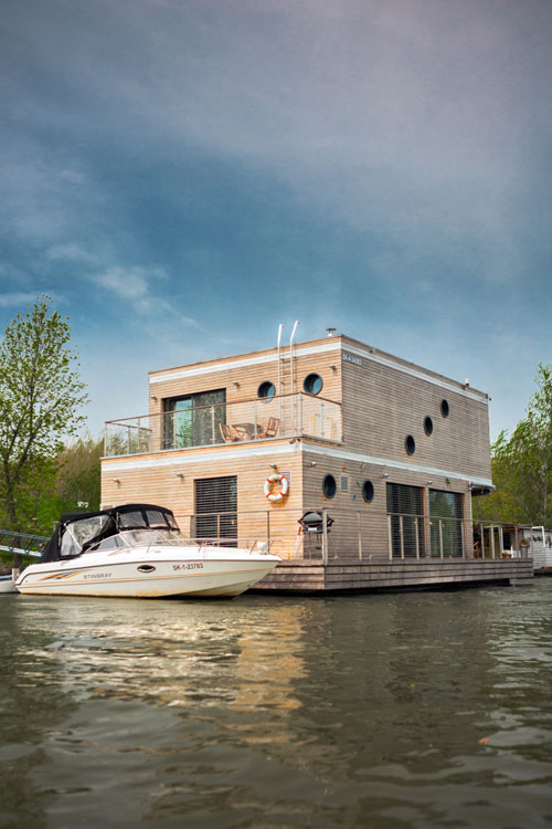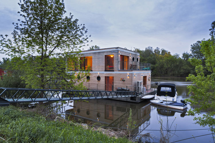 Celoročne obývaný plávajúci dom pre štvorčlennú rodinu stojí na pravom brehu rieky Váh a vznikol spojením predstáv investora a znalostí skúsených lodných architektov. Neďaleko od chránenej prírodnej oblasti sa podarilo postaviť dom s minimálnym dosahom na životné prostredie. Okrem móla ho s brehom spája len elektrický kábel, nič viac.