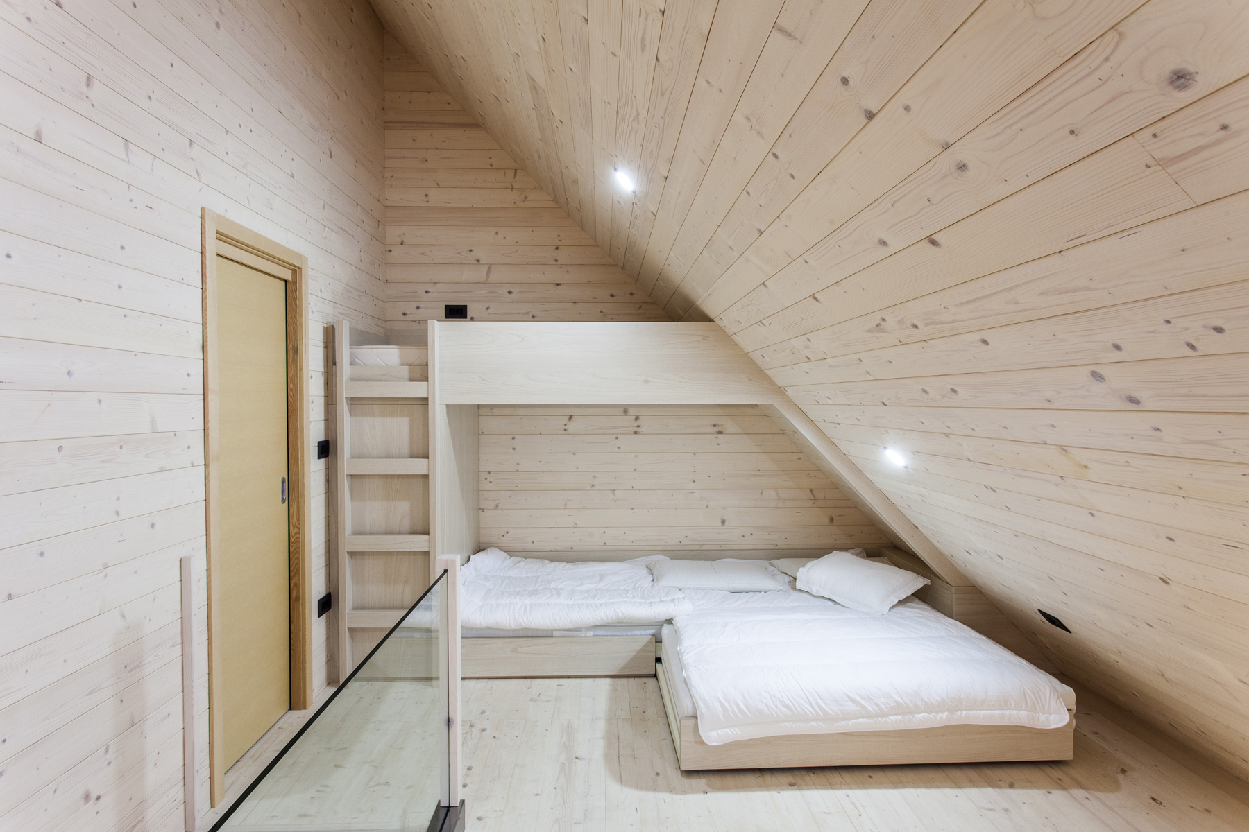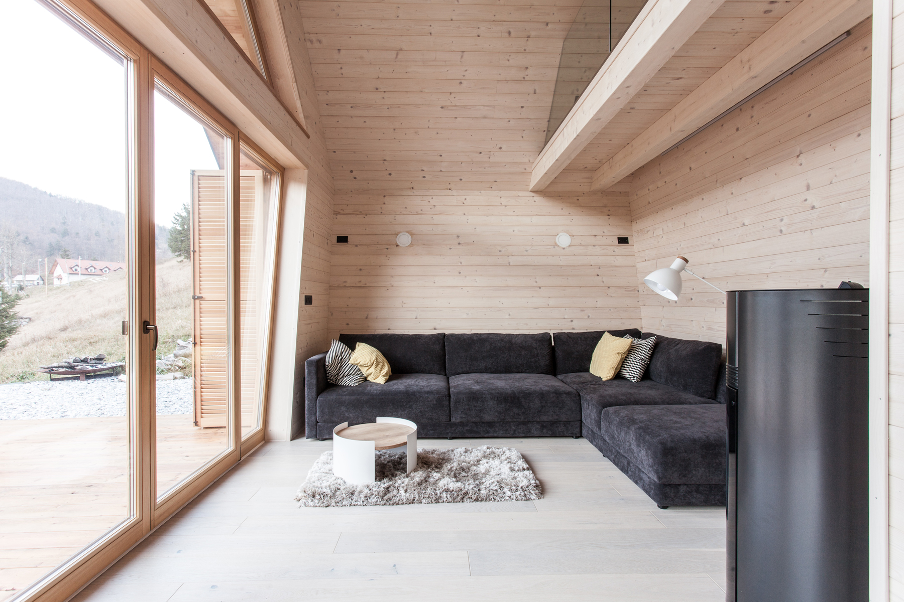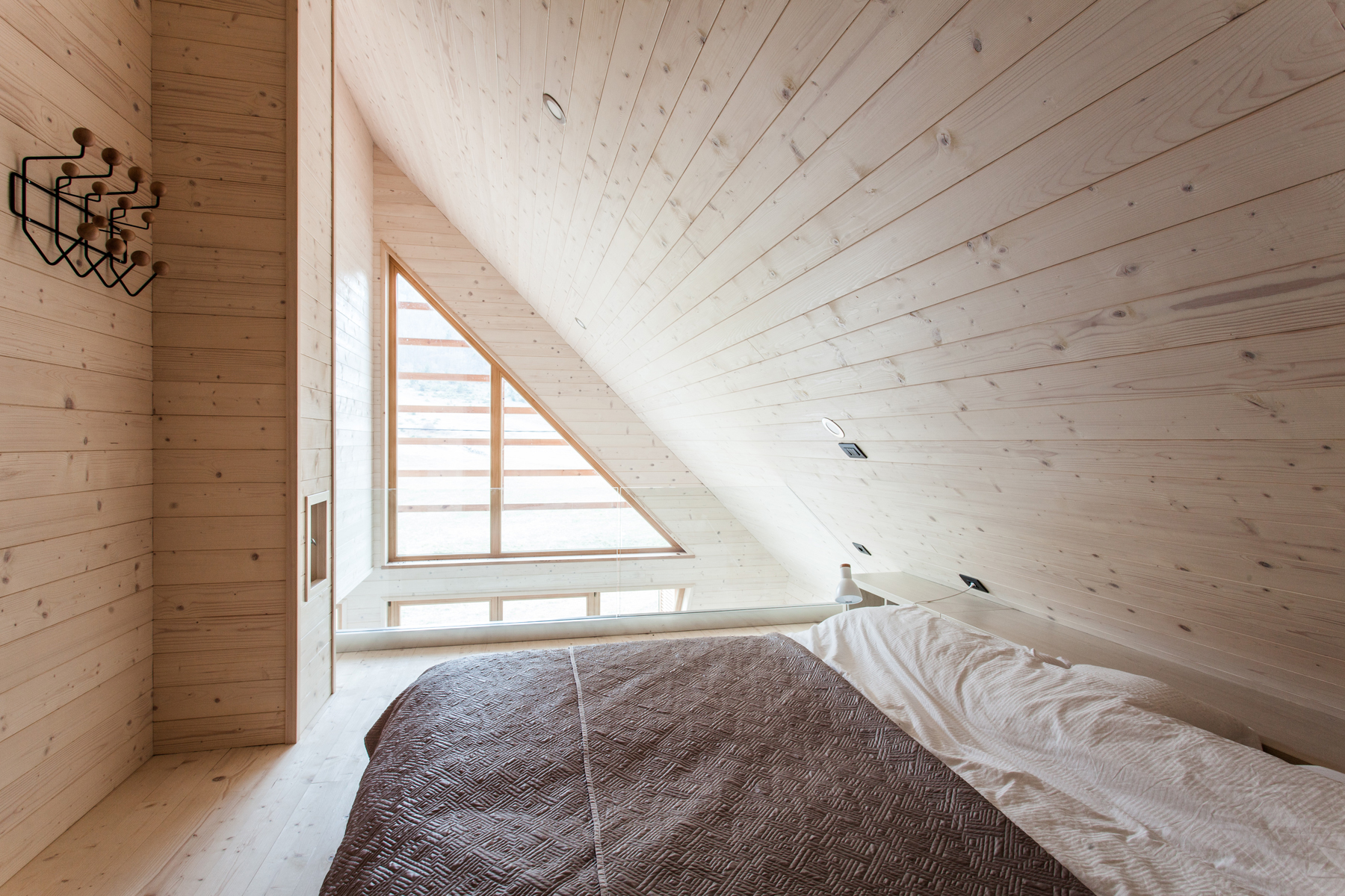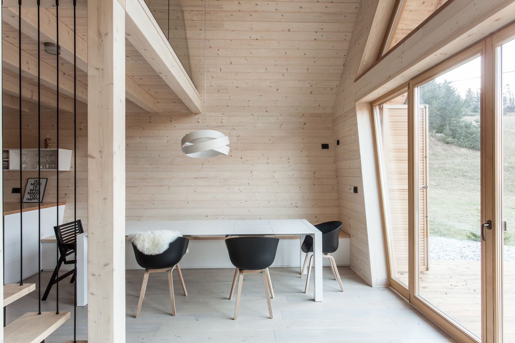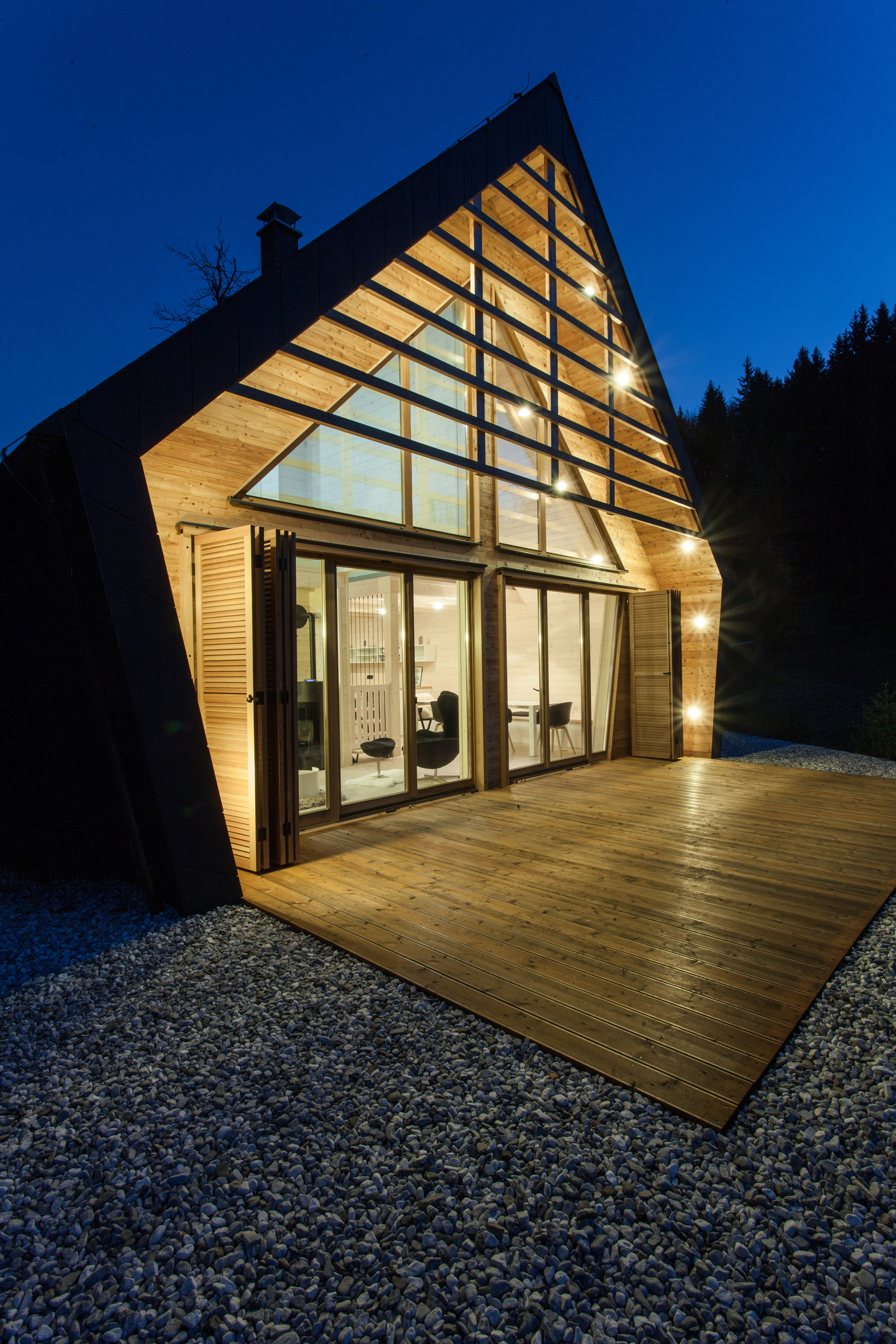 Nezvyčajný drevodom opláštený tmavým kovom s vertikálnym prierezom v tvare päťuholníka vyšiel z dielne slovinského architektonického štúdia PIKAPLUS. V roku 2016 bol ocenený druhým miestom za najlepšiu drevenú konštrukciu v Slovinsku.
