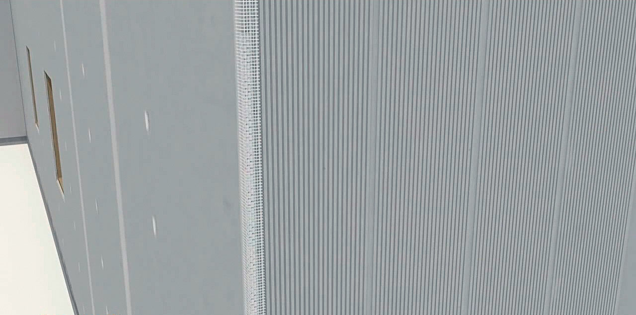 Po vystužení rohov možno pristúpiť k celoplošnému vystuženiu armovacej omietky armovacou sieťkou s okami 4 × 4 mm a odolným alkalickým povrchom. Armovacia sieťka sa najskôr pomocou výsuvného ostrého rezadla skráti na požadovanú dĺžku.