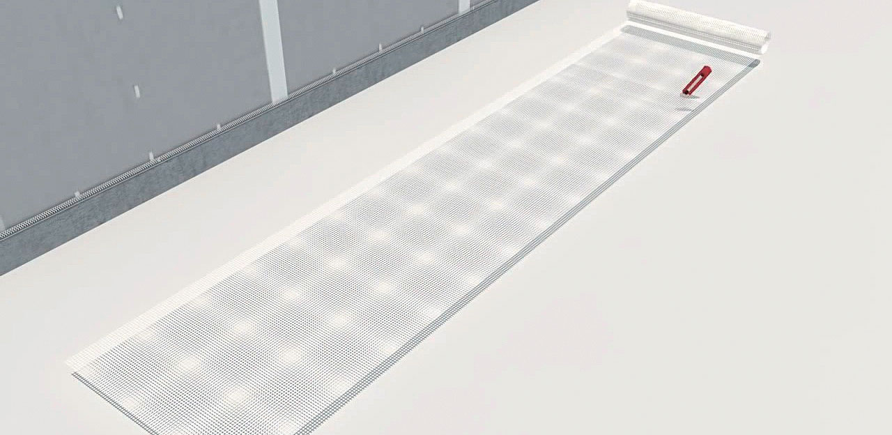 Sieťka sa vtlačí do hornej tretiny vrstvy ľahkej malty. Pásy sieťky sa ukladajú so vzájomným presahom min. 100 mm. Sieťka sa zatrie vrstvou ľahkej armovacej malty antikorovým hladidlom, ktoré sa ťahá od stredu ku krajom, a povrch sa zahladí plsteným hladidlom. Nasledujúci deň sa brúsnym hladidlom prebrúsia nerovnosti.
