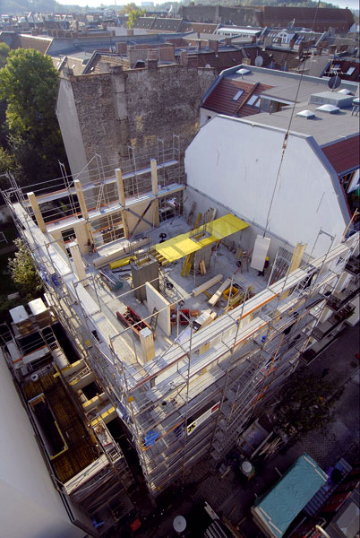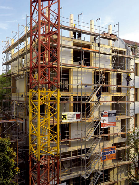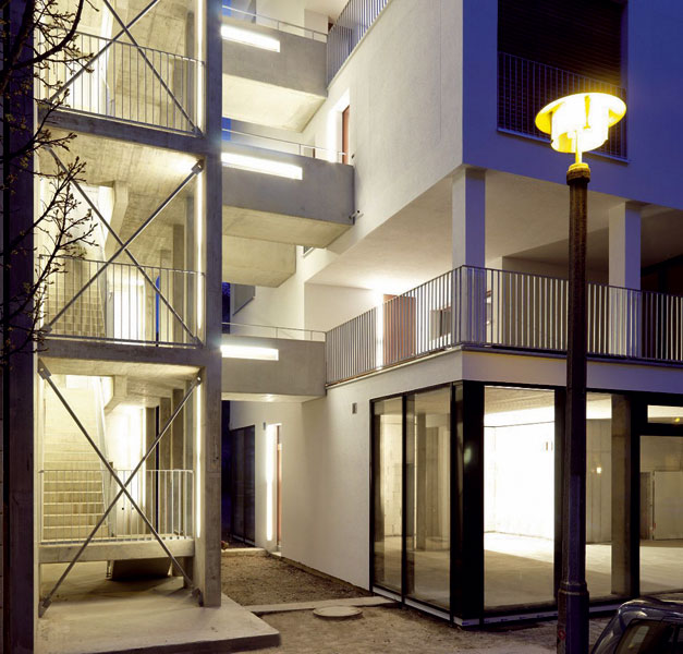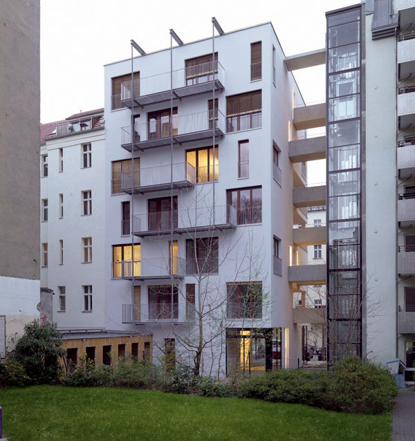 Prvý nemecký obytný dom s výškou 22 m s nosnou konštrukciou celou z dreva vznikol v berlínskej mestskej časti Prenzlauer Berg. Pretože v predpisoch stavebného poriadku takáto stavba doteraz nebola upravená, pri projektovaní a schvaľovaní tejto sedempodlažnej budovy sa centrálnou témou stala požiarna ochrana. Zabezpečila sa premyslenou koncepciou s použitím vysokoúčinného protipožiarneho opláštenia. Už na začiatku projektu vypracovala spoločnosť Dehne, Kruse Brandschutzingenieure, GmbH & Co. KG, pre stavebný projekt celkovú koncepciu požiarnej ochrany, ktorú do projektu nosnej konštrukcie preniesol profesor Julius Natterer. Na základe prípravných prác, intenzívnej spolupráce s úradom mestskej časti Berlín – Pankow a včasného odsúhlasenia projektu boli architekti schopní svoj avantgardný projekt presadiť.