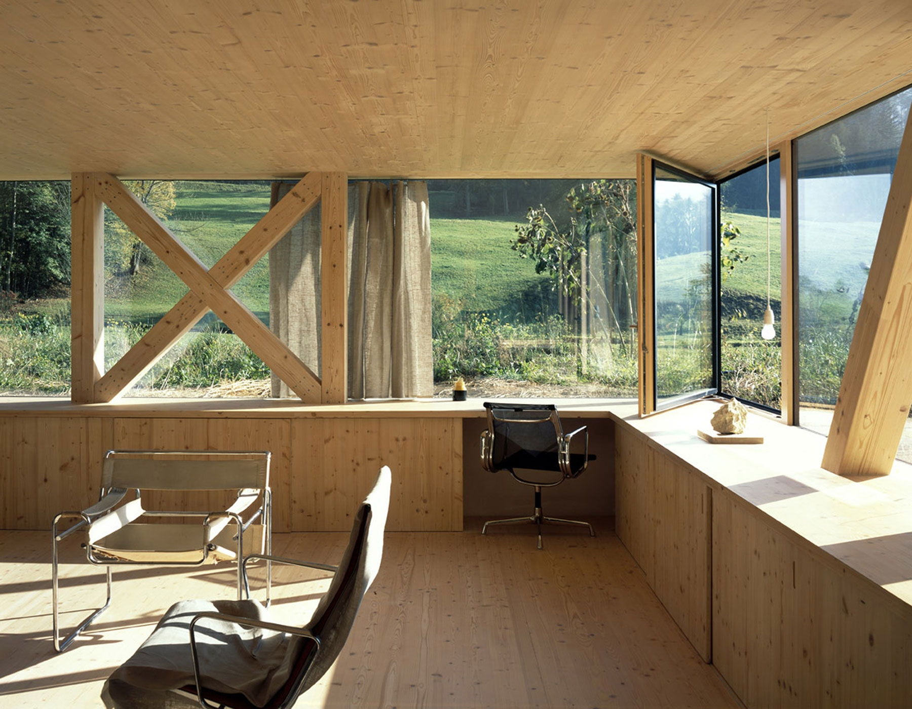 Dom postavený v Balsthali podľa návrhu švajčiarskeho architekta Pascala Flammera s použitím krížom lepených drevených panelov (NOVATOP) zaujme na prvý pohľad jednoduchosťou: obdĺžnikový pôdorys, sedlová strecha, skladaná strešná krytina. Na druhý pohľad a po nahliadnutí do interiéru sa návštevníkovi odhalí neobyčajnosť domu v podobe pôsobivého vnútorného priestoru. Celistvý koncept stvárnenia interiéru umocňuje čaro všadeprítomného dreva. Vycibrené detaily, aké sa nevidia každý deň, podčiarkujú neokázalú noblesu bravúrne prostej architektúry.