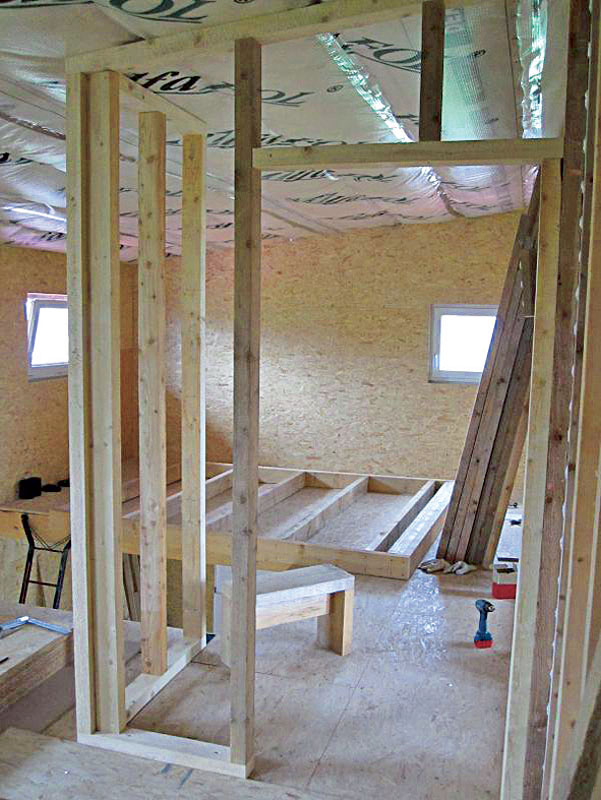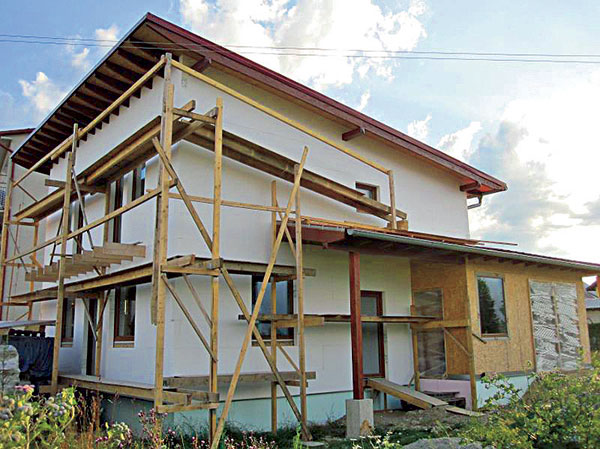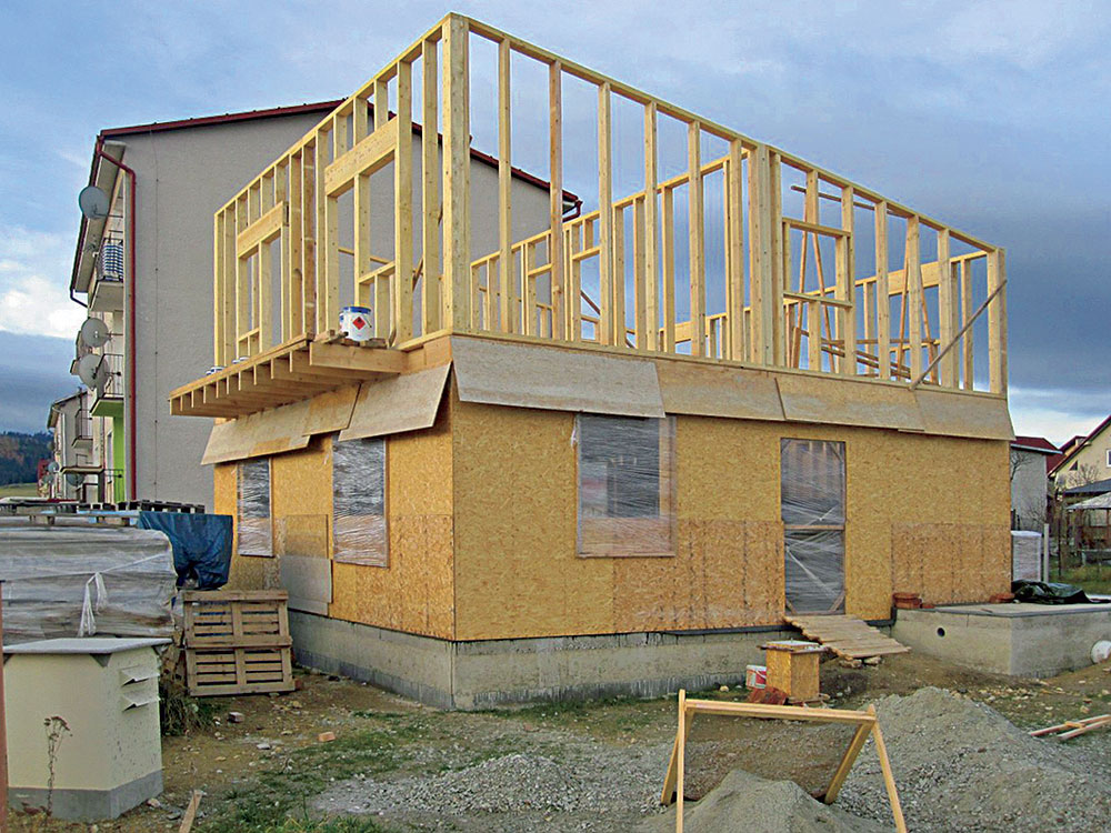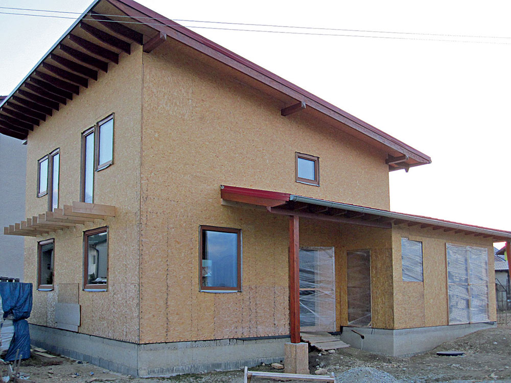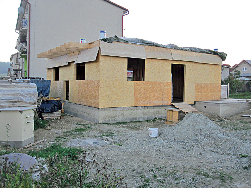 V konštrukcii sa použili dosky OSB 3-EGGER (emisná trieda E 0-lepené PUR lepidlom). Na zateplenie sa použil klasický fasádny polystyrén (IZO 4). Vnútorná izolácia steny sa riešila pomocou francúzskeho špeciálneho protipožiarneho materiálu – tvrdých dosiek Odiboard. Výplňové otvory sú plastové z profilov Salamander Blue Evolution.