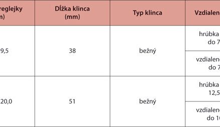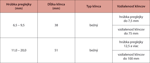 Tab. 1: Odporúčané hodnoty umiestnenia klincov