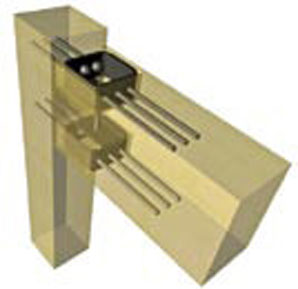 | Obr. 2 Zobrazenie styčníka polotuhého rámu a skúška hybridného styku oceľového stĺpa a dreveného prievlaku | |
