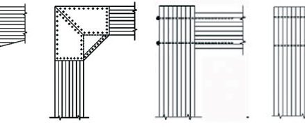 Obr. 1 Schémy niektorých možných usporiadaní polotuhých rámových rohov TDS