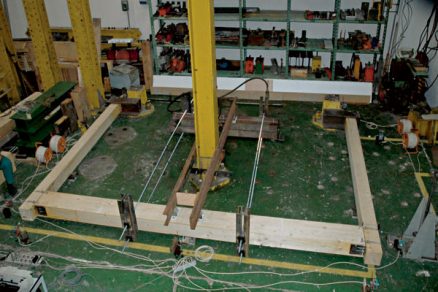 Merala sa deformácia drevených prvkov a napätosť v oceľových stykových dieloch. Z nameraných hodnôt sa vyhodnotilo natočenie medzi prievlakom a stĺpom v mieste styku v závislosti od pôsobenia ohybového momentu v mieste styku. Získané krivky sa spracovali pomocou metódy najmenších štvorcov a výsledná krivka M-ϕ sa porovnávala s krivkou M-ϕ získanou z výpočtu modelu styčníka pomocou metódy konečných prvkov.