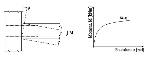 Obr. 6 Natočenie styčníka a závislosť M-φ