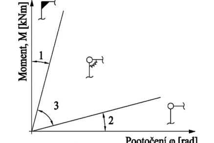 Výpočet polotuhého dreveného rámu možno urobiť aj iteračným spôsobom odpočítaním príslušnej tuhosti z krivky M-φ pri danom prírastku zaťaženia.