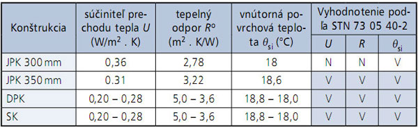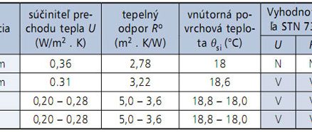 Z priemerných hodnôt troch typoch drevených obvodových konštrukcií (pozri tabuľku) sa zistilo, že nie všetky vyhovujú súčasnej požiadavke na tepelný odpor a súčiniteľ prechodu tepla podľa platnej normy STN 73 0540-2: 2002, v ktorej sa stanovujú tieto hodnoty: