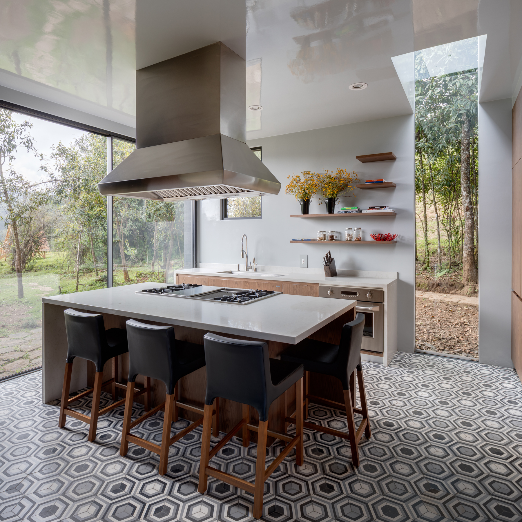 Každý sólo priestor je spojený s terasou a otvára sa na opačný koniec – ponúka z každého bloku iné výhľady na okolitú krajinu. Nad obývacou izbou a hosťovskou spálňou sa nachádzajú strešné terasy. Na strechách ostatných budov je možné založiť záhradku. Napriek tomu, že sú izolované a rozdielne, vytvárajú jeden celok a nenápadne miznú v krajine.