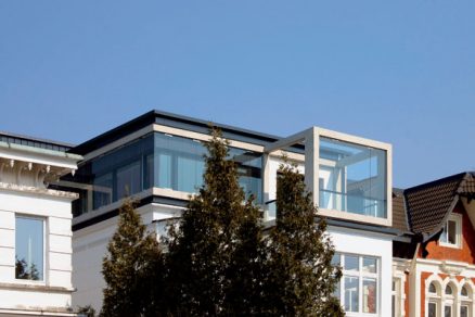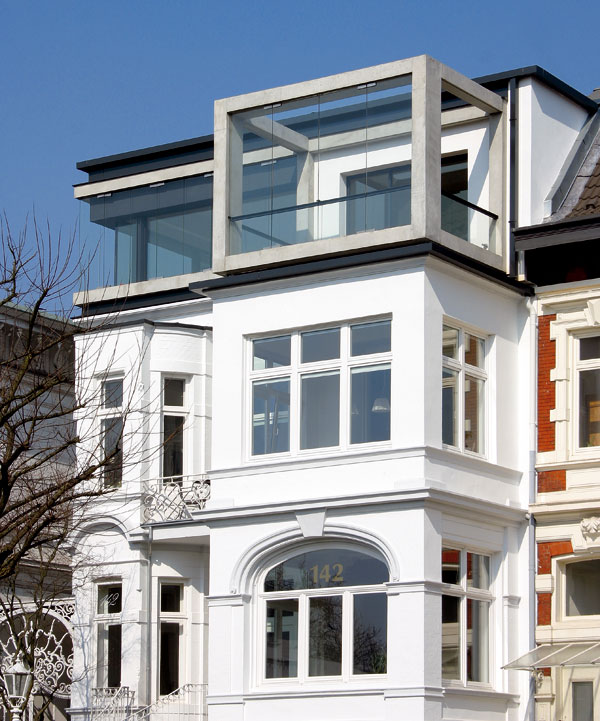 Ateliér hannoverského architekta Axela Nieberga existuje asi osem rokov a realizácie má prevažne doma v Nemecku. Napriek tomu si však získal pozoruhodné medzinárodné renomé. Dá sa očakávať, že aj nadstavba viac než storočnej vily na fotogenickom mieste v Hamburgu sa dočká značnej publicity – za niečo vyše roka od dokončenia vzbudila pozornosť nielen výrazným architektonickým rukopisom, ale aj zariadením, ktoré Nieberg, nasledujúc vzor klasikov, do svojich stavieb navrhuje.