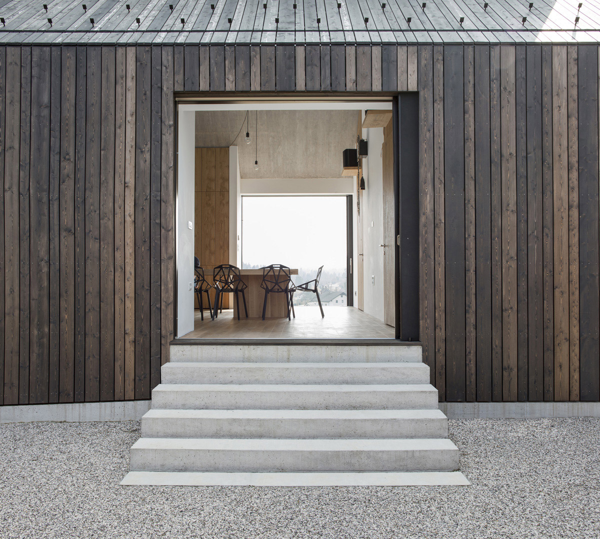„V komínovom dome môžete nájsť odkazy na pôvodnú slovinskú, ale aj modernú lokálnu architektúru, miestne remeslá a podobne. Tieto odkazy však nie sú také podstatné ako samotný fakt, že ústrednou témou domu sa stal jediný archetypálny architektonický prvok. Je zaujímavé, ako to ovplyvnilo priestorový koncept, vnímanie a objemové členenie objektu,“ vysvetľujú tvorcovia projektu základné črty a ideu domu.