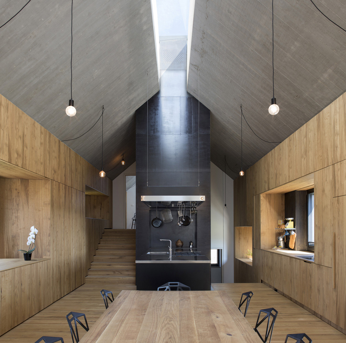 Z historického hľadiska je komín jedným z prvých technologických prvkov, ktoré sa v architektúre objavovali spolu s pecou – zdrojom tepla, svetla a i prípravy jedla. Komín dával peci, ktorá bola centrálnym miestom rodinného života, zmysel. I v objeme tohto zaujímavého domu tvorí veľmi dôležitú úlohu transformovaný obrys komína.