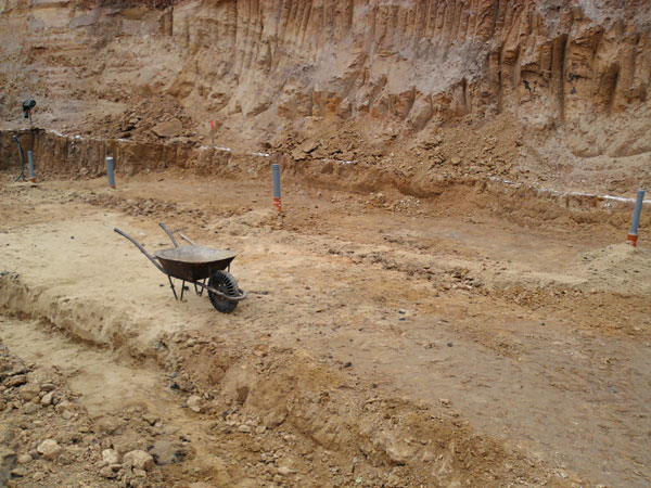 Začistenie základu bolo napodiv bez problémov. Mali sme šikovného bagristu, ktorý aj oblúk vedel vykopať riadne. A bez zbytočných lavičiek. Stačilo len nakresliť na zem obrysy budúceho domu.