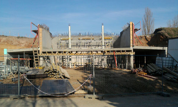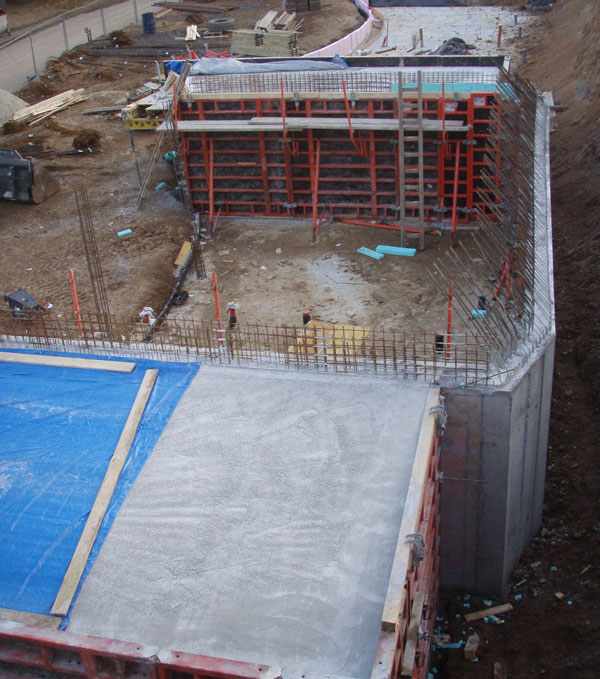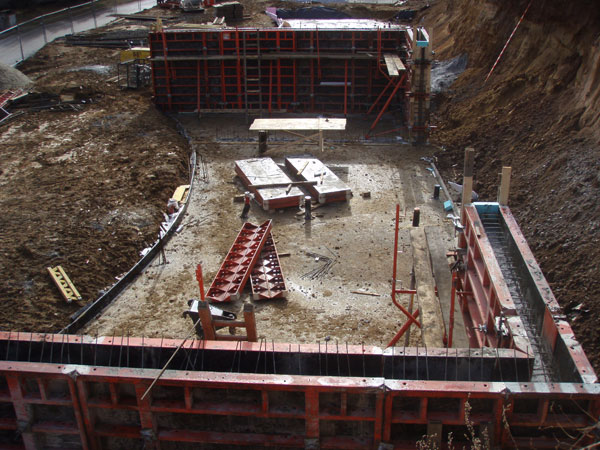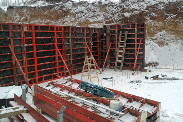 Tvrdí sa, že začiatky bývajú ťažké. Nám však ťažšia práca v snehu neprekážala. No dobre, prekážala, ale horúca káva a čaj to spravili. A mohlo sa pracovať naplno. Základová doska hrubá len 20 cm s minimom výstuže vďaka použitiu vláknobetónu.
