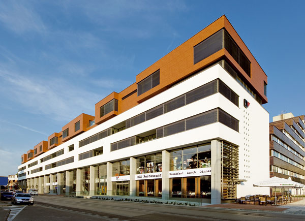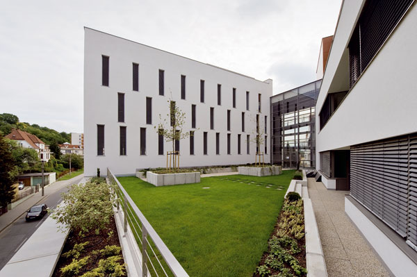 K lineárnej časti stavby je zo severovýchodu pripojený 7-podlažný parkovací dom, pričom odstupom obidvoch hmôt v tomto styku sa dali presvetliť kancelárie a vytvoriť zelené átrium.