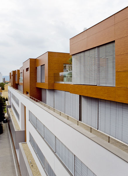 „Parkovací dom vyvolal azda našu najväčšiu polemiku s investorom,“ spomína Juraj Polyák. „On sa totiž na to pozeral celkom pochopiteľne cez ekonomické ukazovatele a určite by pristal aj na klasiku v podobe oceľovej konštrukcie obtiahnutej plechom alebo sitom. S tým som nesúhlasil a nakoniec to prijal aj investor s pochopením po vzájomnej dohode. Ale aj ja som dlho zvažoval, akú štruktúru a konštrukciu použiť. Bolo to veľmi dôležité rozhodnutie pre celkový výsledok v architektúre stavby.“