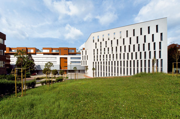 Objekt parkovacieho domu je vo svojom architektonickom výraze samostatnou hmotou, ktorá svojou funkciou dala šancu na netypické architektonické riešenie a stvárnenie v spojení s lineárnym objektom. Perforovaný betónový protipól k objektu bielej farby vytvára veľmi zaujímavý výtvarný účinok a v podmienkach tohto mesta je doslova novátorskou záležitosťou.